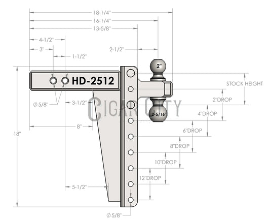 .5″ Heavy Duty 12″ Drop/Rise Hitch – Bulletproof Hitches – Adjustable Dual Ball Mount