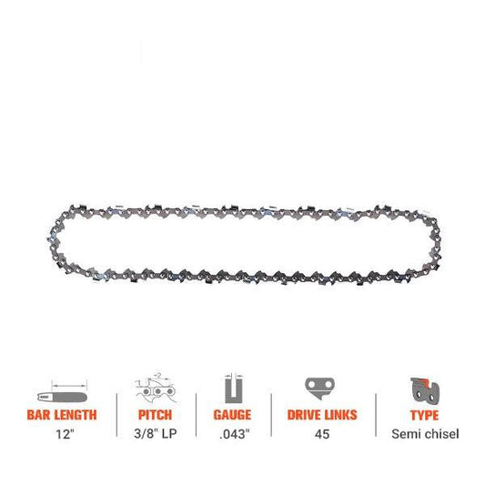 Hipa 12 Inch Chain 3/8 LP .043 45 DL For DeWalt DCCS620B DCCS620P1 Black Decker LCS1240 Husqvarna H38 120i T535iXP 535iXP 536LiXP Chainsaw 61PMM3 45