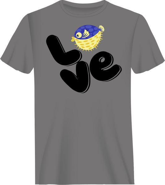 Love Fishing Blue Blowfish Globe Man T-Shirt