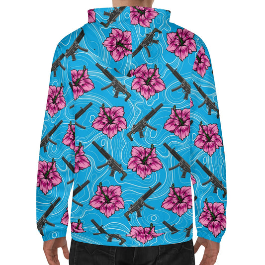 High Capacity Hibiscus Blue Mens Lightweight Hoodie