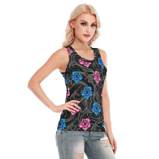 High Capacity Hibiscus Black Women's Skinny Sport Tank Top