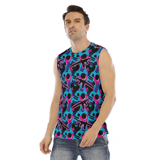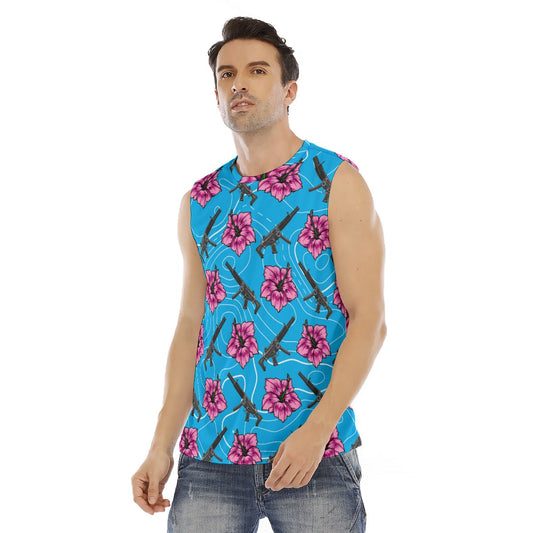 Rad Palm High Capacity Hibiscus Blue Men's O-neck Sleeveless Tank Top