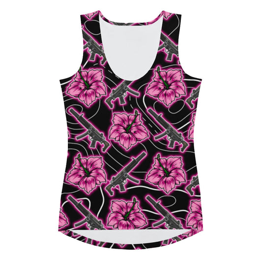Rad Palm High Capacity Hibiscus Black Neon Tank Top