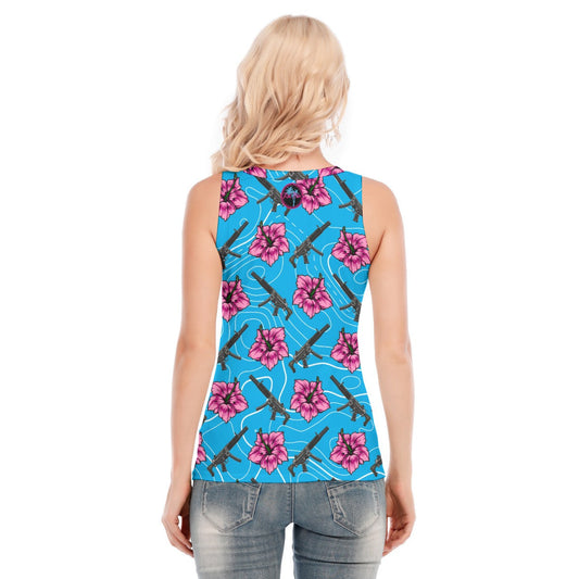 High Capacity Hibiscus Blue Women's Skinny Sport Tank Top