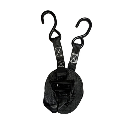 1" Black Ratchet Strap w/Vinyl S Hook | LENGTH OPTIONS
