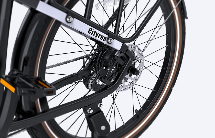 A versatile e-bike with Aluminum alloy pedals, a 7-speed Shimano gear shift system, pedal assist, and throttle, the Cityrun can handle all weather conditions. It comes with a leather handlebar grip for added comfort and a built-in water bottle holder that's perfect for staying hydrated on your rides.