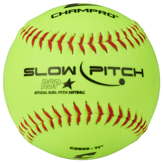 Ideal for slowpitch practice Durahide cover Solid polyurethane core Flat red seam