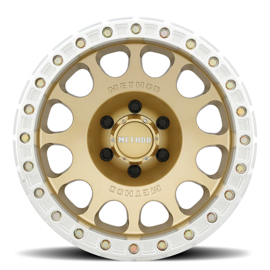 Method MR105 V3 Beadlock 17x9 -38mm Offset 5x5 71.5mm CB Gold Wheel w/ BH-H24125