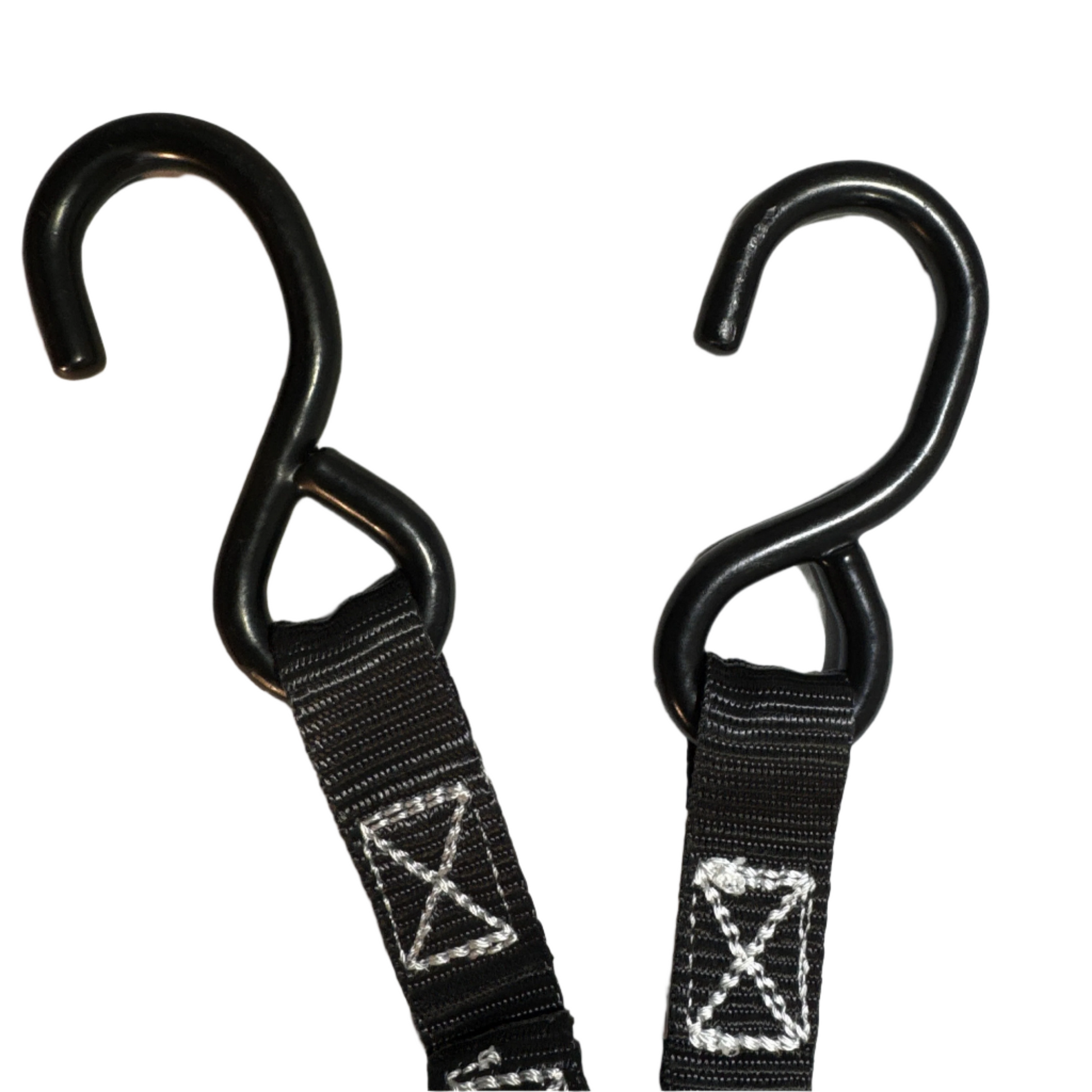 1" Black Ratchet Strap w/Vinyl S Hook | LENGTH OPTIONS