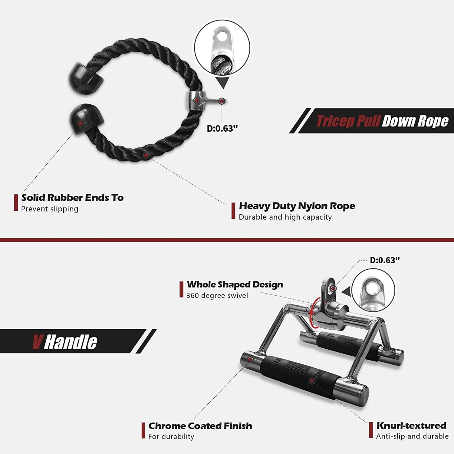 Double-D handle: 7.5'X7.5'x5.5' (LxWxH), 0.53-inch hole for the cable systems.