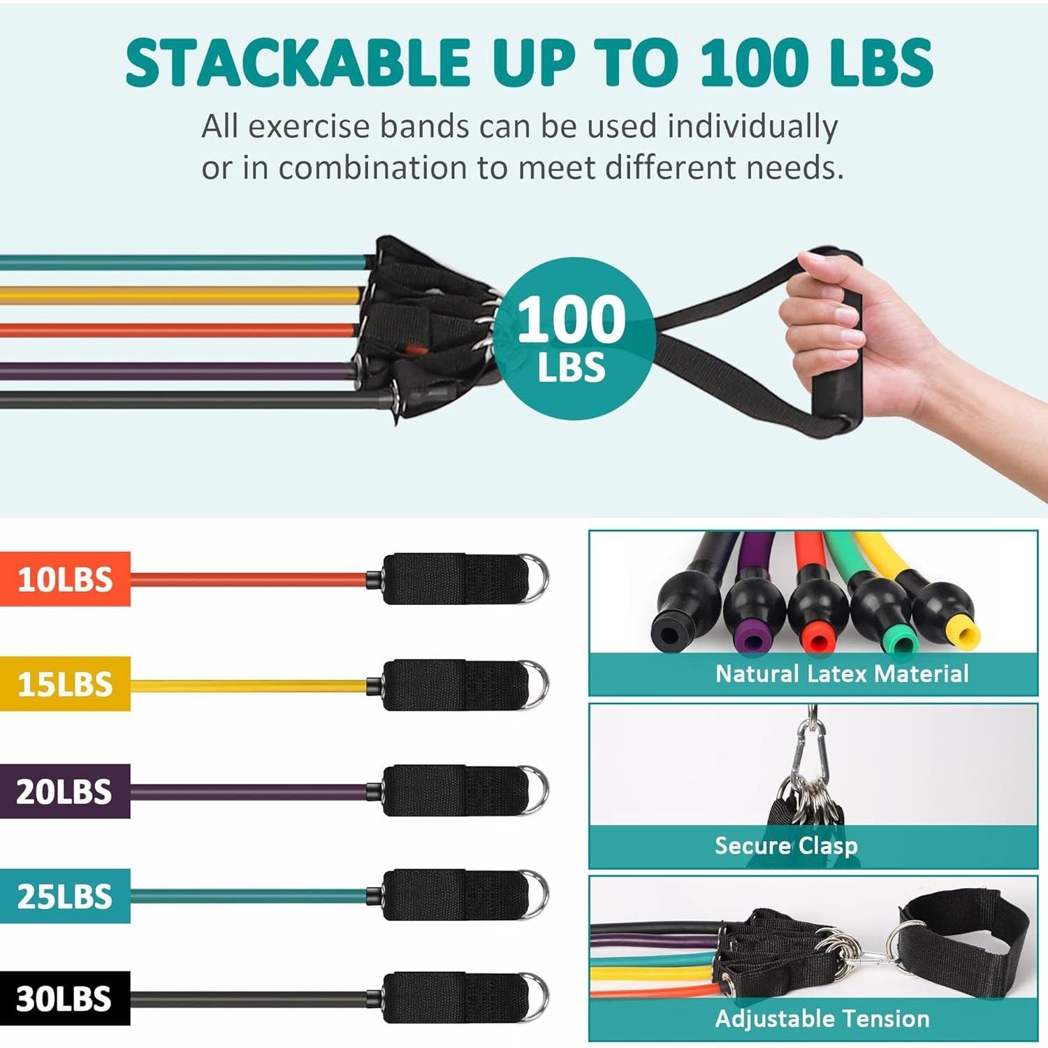 11 Pcs Resistance Bands Set with Door Anchor, Handles, Ankle Straps Fitness Stretch Bands