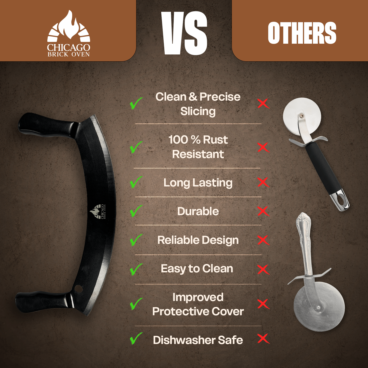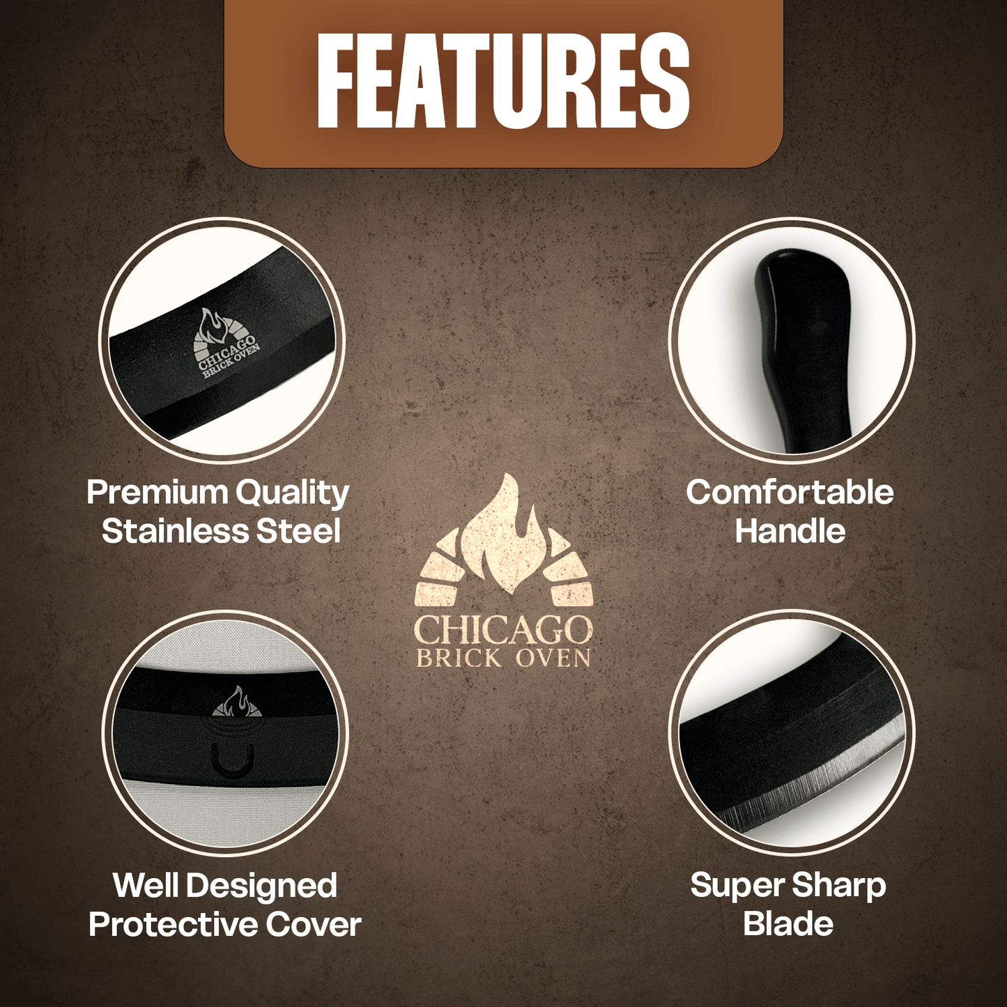 1- Sharp Rocking Blade for Effortless Slicing- Slice through any crust with ease while keeping toppings perfectly in place. This curved blade makes pizza cutting quick, clean, and satisfying every time.2- Premium Stainless Steel Construction- Made from high-quality, food-grade stainless steel for long-lasting durability. Resists rust and stains while maintaining a razor-sharp edge over time.3- Includes Protective Safety Cover- Comes with a secure cover for safe storage and handling. Prevents accidental cuts—perfect for busy home or professional kitchens.4- Easy to Clean – Dishwasher Safe- One-piece seamless design leaves no place for food buildup. Simply rinse or toss it in the dishwasher for a quick, hygienic cleanup.5- Great Gift for Pizza Lovers- A thoughtful and practical gift for pizza enthusiasts, home cooks, and foodies. Ideal for Christmas, birthdays, or housewarming parties.Description:- Slice like a pro with this 12-inch pizza cutter rocker blade, designed for clean, effortless cuts through any crust while keeping toppings perfectly in place. Made from premium food-grade stainless steel, this pizza cutter stainless steel tool offers long-lasting durability, rust resistance, and a consistently sharp edge. Its seamless one-piece design makes it a dishwasher safe pizza cutter, ensuring quick and hygienic cleanup with no hidden crevices. The included protective cover adds an extra layer of safety for secure storage, whether you're using it at home or in a professional kitchen. Ideal for pizza enthusiasts and chefs alike, this large pizza cutter delivers precision and performance every time. Whether you call it a pizza cutter rocker, pizza knife rocker, or simply your favorite professional pizza cutter, this versatile tool is a must-have for every pizza lover.