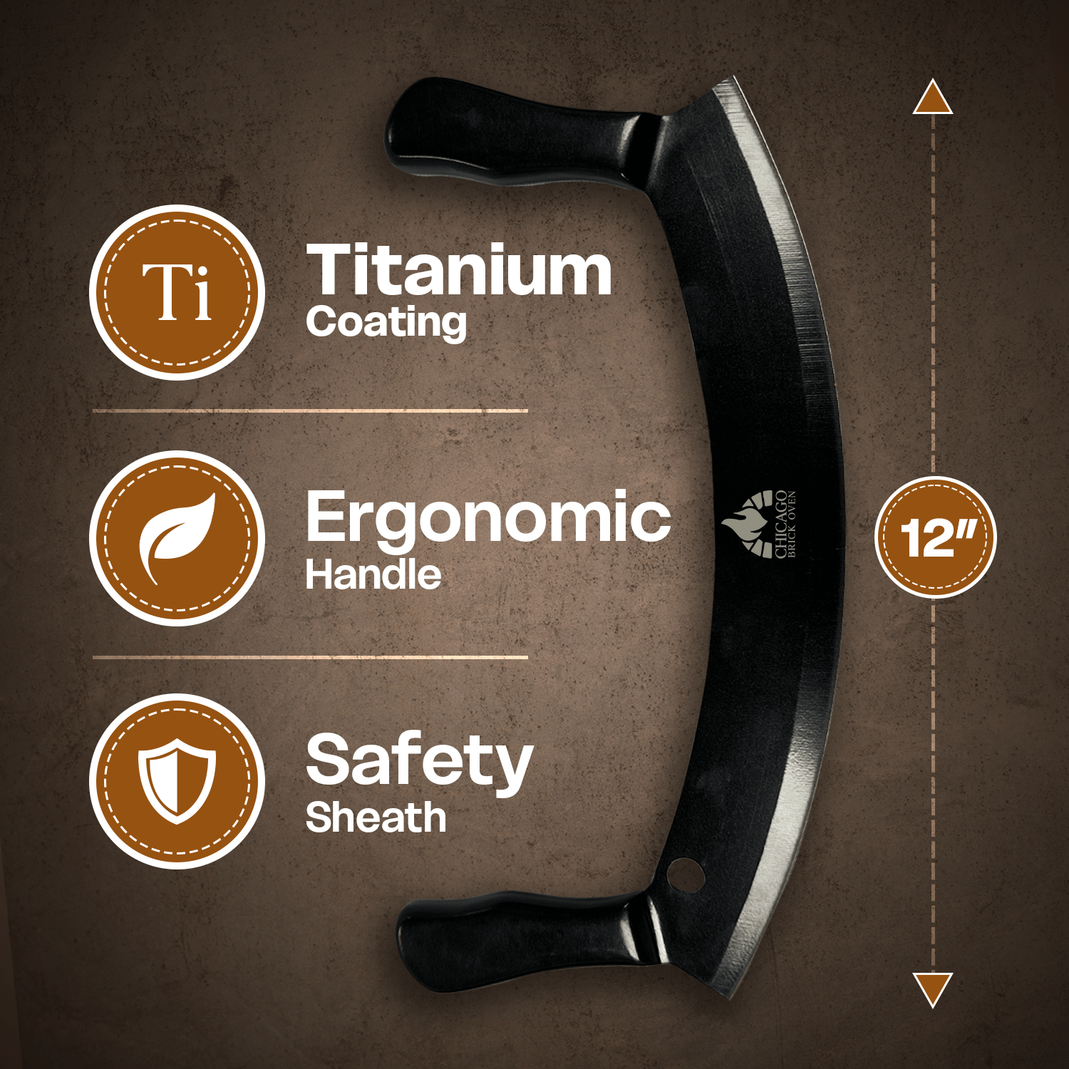 12-Inch Heavy-Duty Pizza Cutter Rocker Blade – Stainless Steel Mezzaluna Knife with Titanium Coating – Professional Pizza Cutter w/ Protective Cover