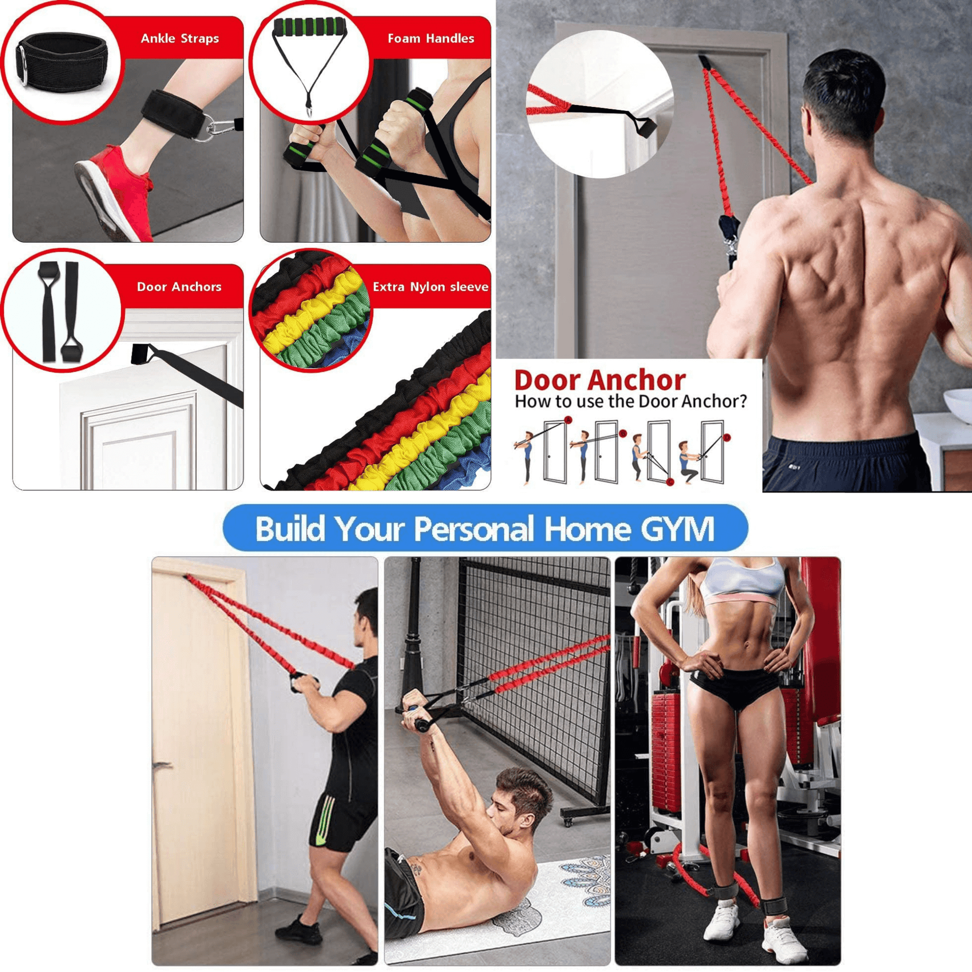Got no time to head down to your local gym every day? With this set of exercise bands, you can keep fit and shape a better body without the limit of gym or exercise equipment. Enjoy a full-body workout in the comfort of your own home. This is the ultimate in-home gym resistance training.