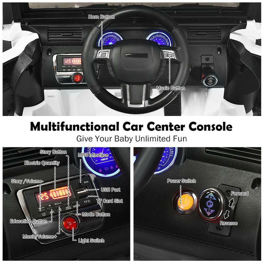 Are you bothered by your kids' addiction to video games? Our ride-on truck is the perfect solution. This toy car is a small version of a real luxury truck. Children can seat themselves in the car and go for a ride, or parents can control the car with the 2.4G Bluetooth remote control. The spacious seat, openable doors with magnetic lock, forward/reverse shifter, horn, and steering wheel will give them a wonderful and exciting driving experience. With its slow startup design, shockproof wheels, and multi-point safety belt, your little one will get the best protection. Kids can press the button to switch and listen to various songs and stories, doubling their enjoyment.