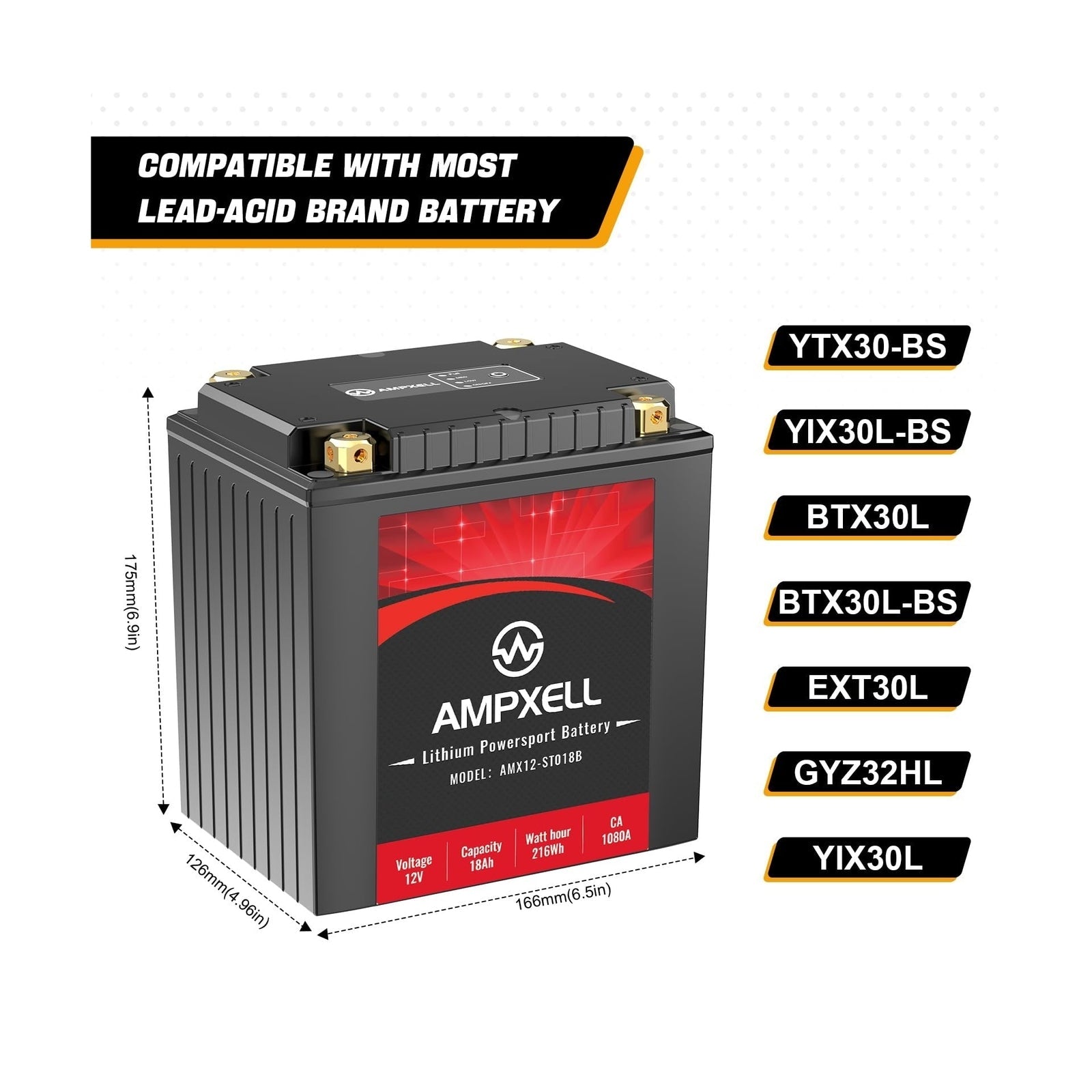 - Universal Fit & Quad Terminal Design: With its versatile spacer and terminal configuration, the AMPXELL battery fits most motorcycles, ATVs, scooters, personal watercraft, and generators with ease, making it an ideal replacement for traditional YTX30L-BS batteries.