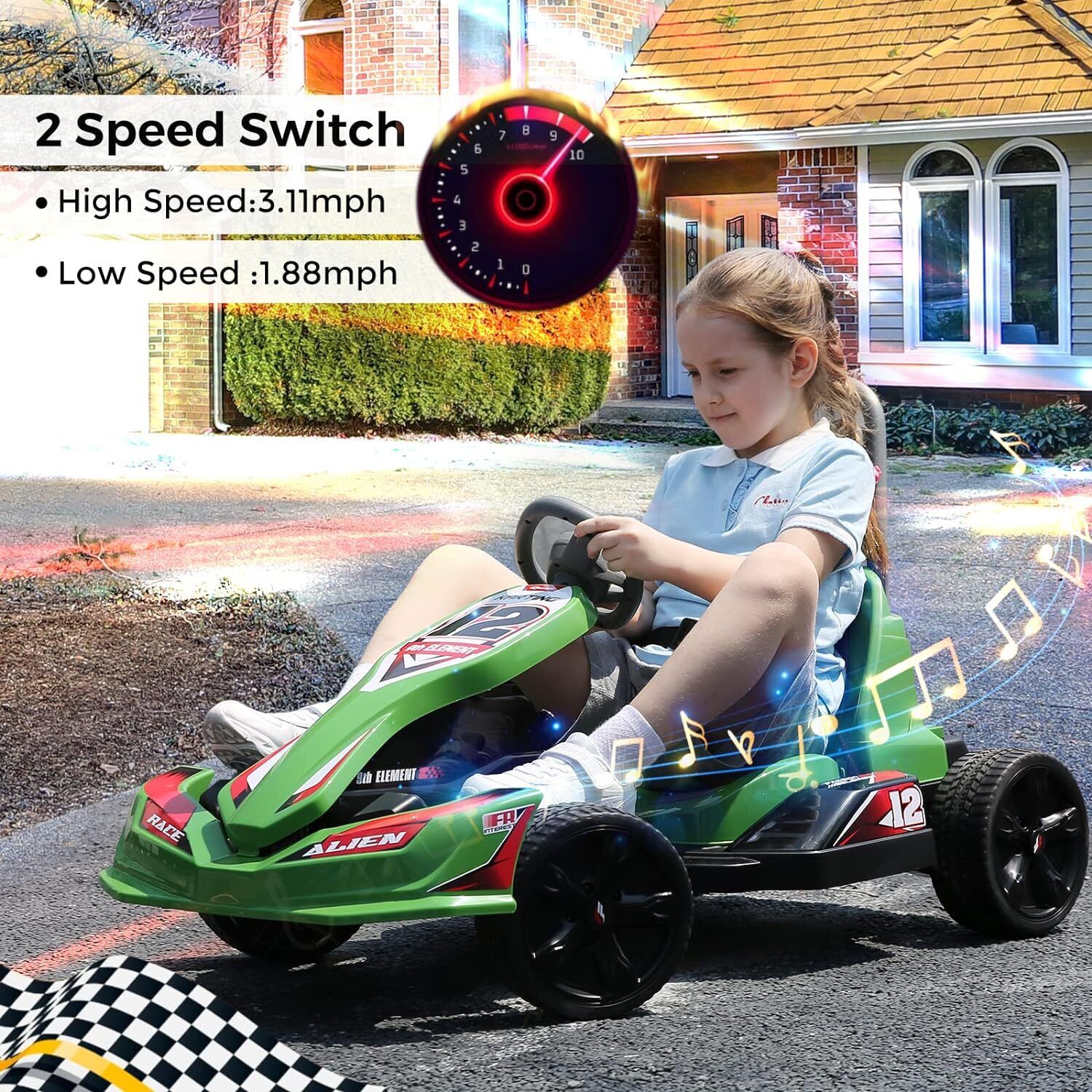 The 12V 2WD Electric Go Kart for Kids with Remote Control and Safety Belt is the ultimate ride-on toy for your little adventurer. This upgraded racing car is unlike any other toy car out there. With its sleek design and powerful performance, it's guaranteed to provide endless hours of fun and excitement.