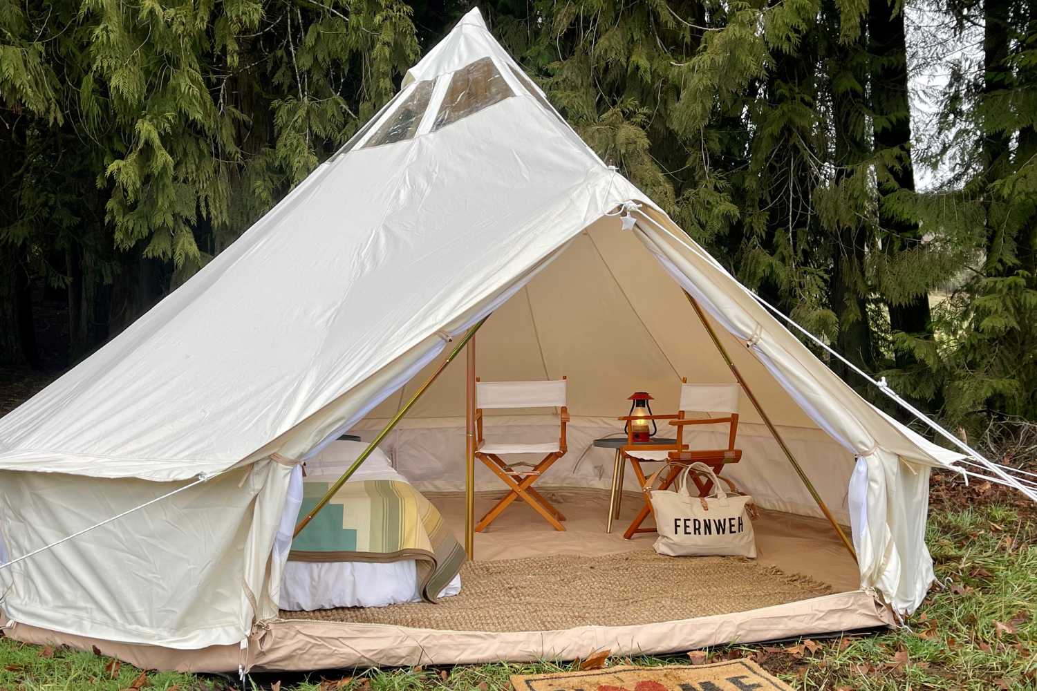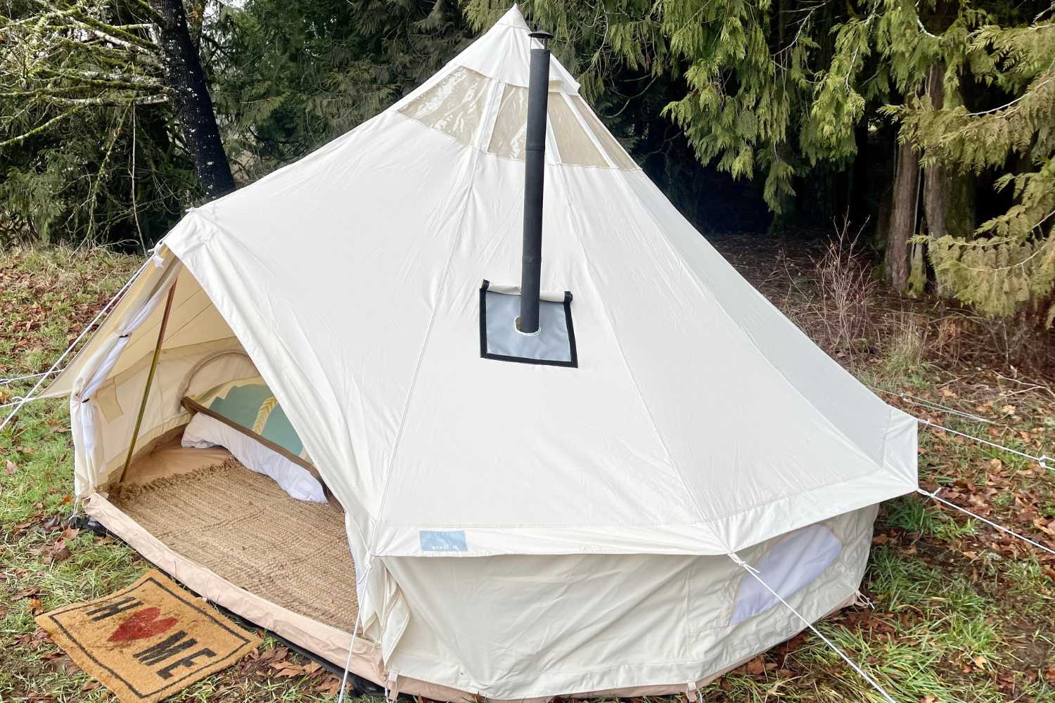 This compact version of Stella, making her easier to bring car camping or fit in a backyard. Stella is the perfect tent for a unique glamping adventure, with her 360-degree transparent roof panels that let you gaze up into the sky. Simply raise the curtain for those time you need a little privacy from the birds or sun. Discover a new way to sleep under the stars with the baby 13-foot Stella™ Stargazing Canvas Tent!