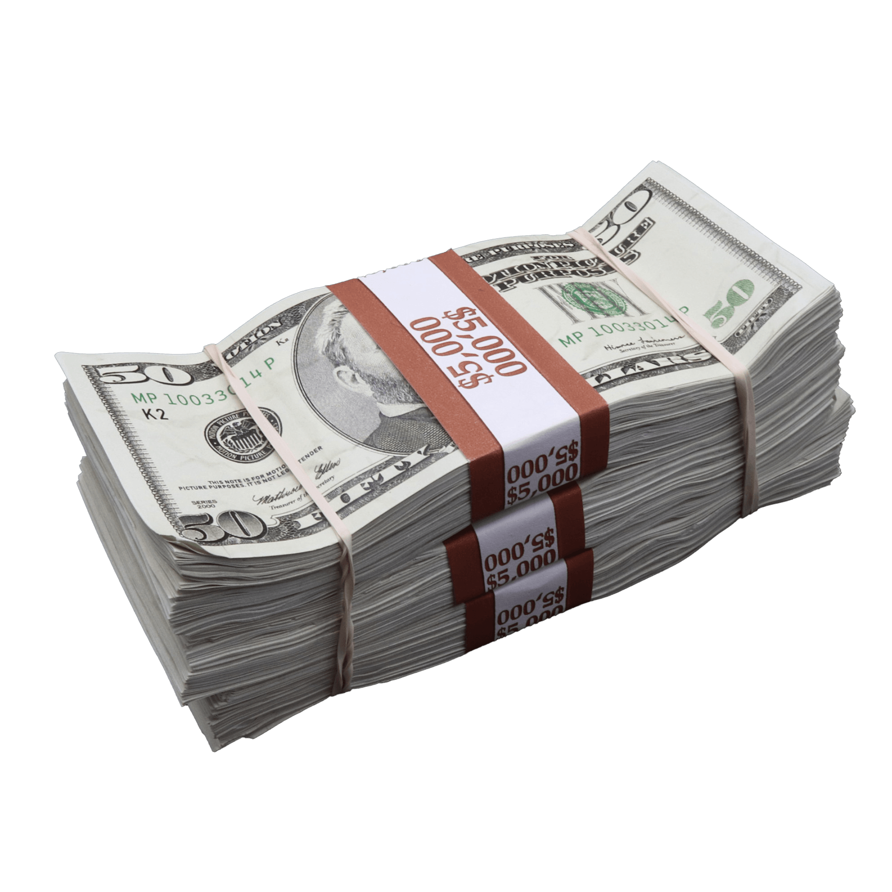 Our $15,000 2000 Series Aged Full Print Stacks Bundle is perfect for film, TV, advertising, music videos, and more. This bundle includes three hundred $50 2000 Series Aged Full Print bills for a total of $15,000. The non-glossy bills feature unmatched quality, realistic detail, and are each double sided. Plus, you'll get money bands and rubber bands. Get the closest look to real money without breaking the bank.
