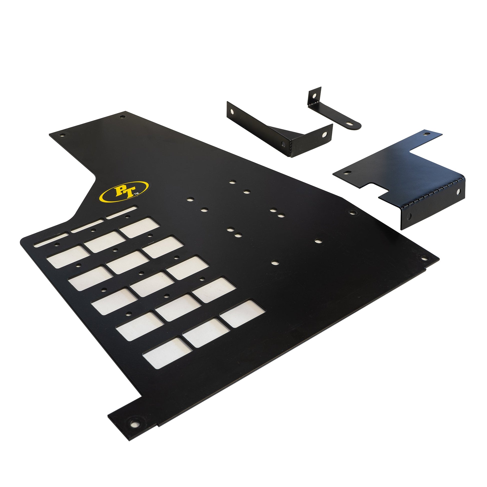 The 2 door Bronco Plate is driver side only so it does not block the cubby or interior light on the passenger side. It is completely bolt-on, utilizing the hardware holding the top on and the cargo tie downs. Modification to the plastic trim is optional. Four mounting points ensure an extremely rigid and robust mount. In addition to mounting a Power Tank, there are Fire Extinguisher Bracket mounting holes (optional) and MOLLE/PALs cutouts to attach additional storage (sold separately).
