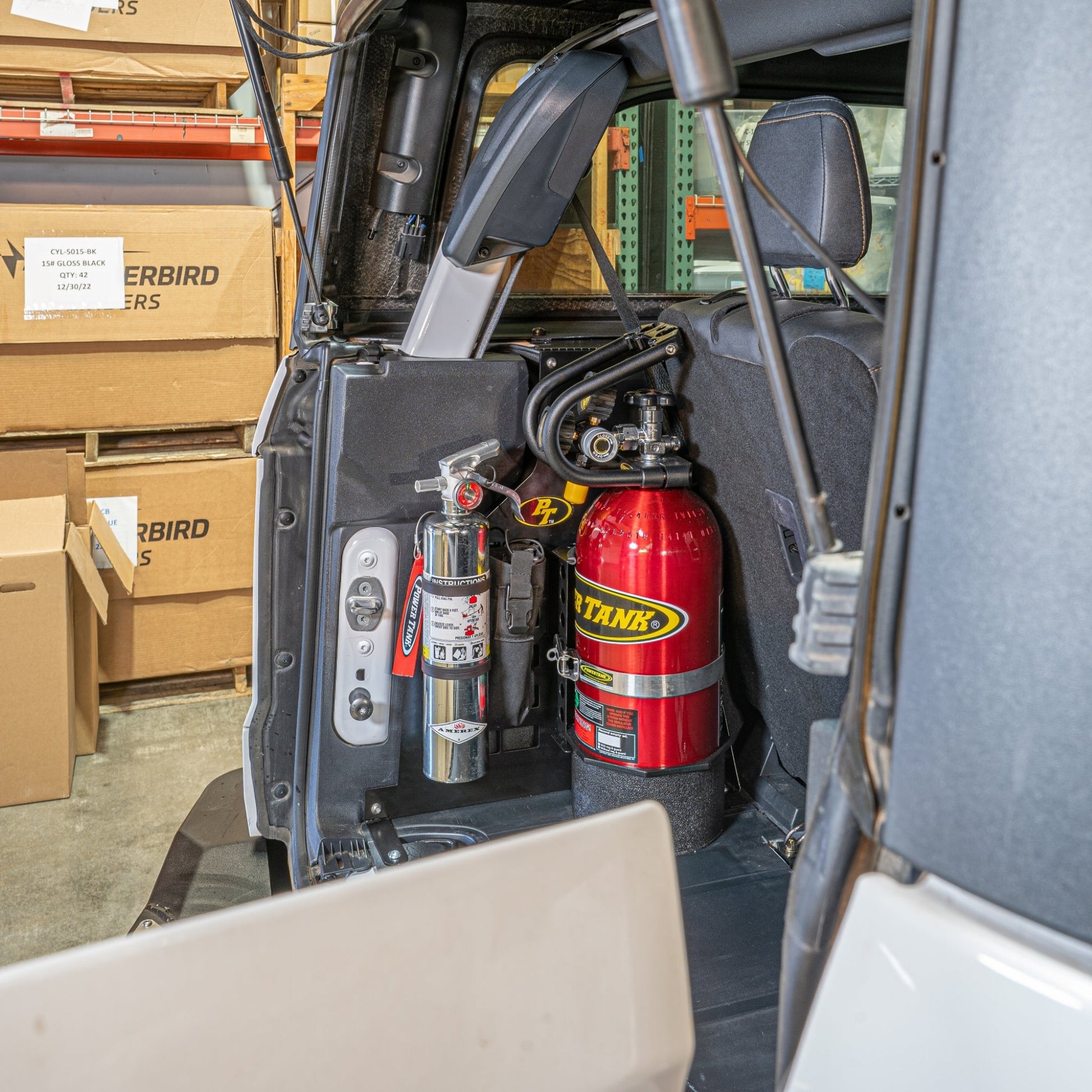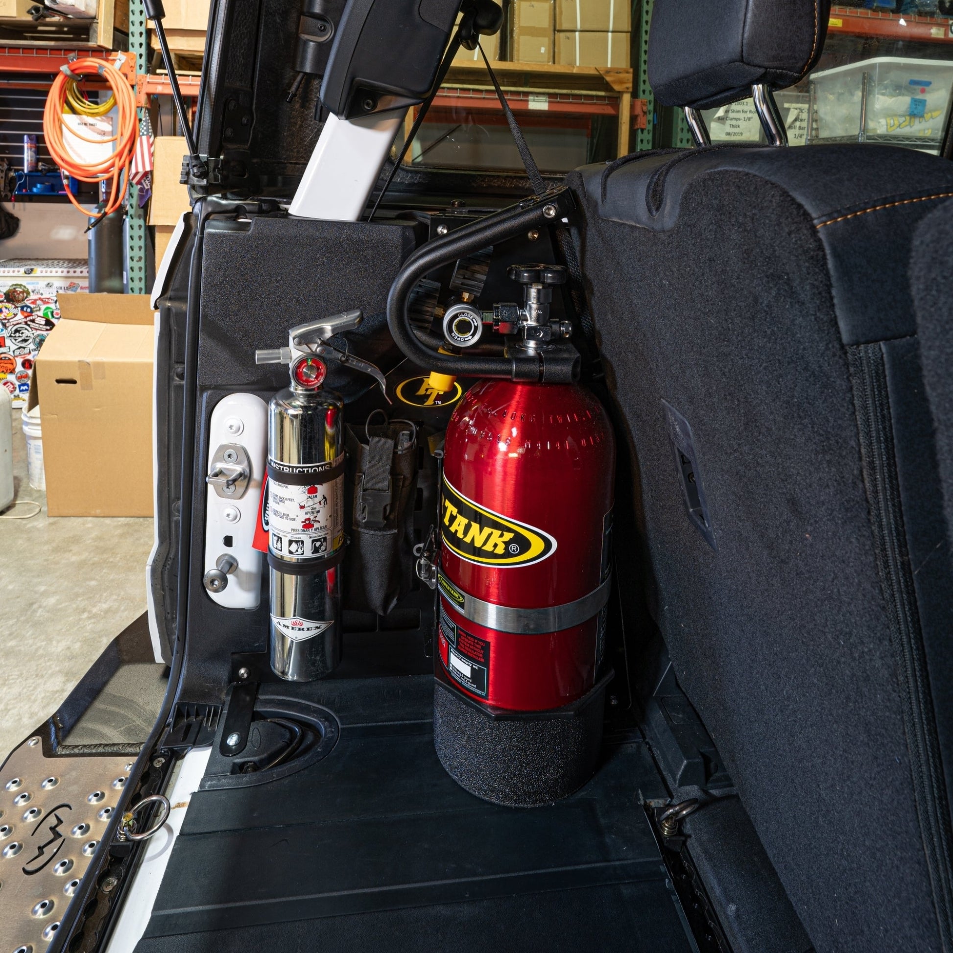 Two essential upgrades that should be in every Bronco that spends life in the dirt are a Power Tank and a fire extinguisher. Fortunately, our 2 Door Bronco Plate provides a mounting solution for both.