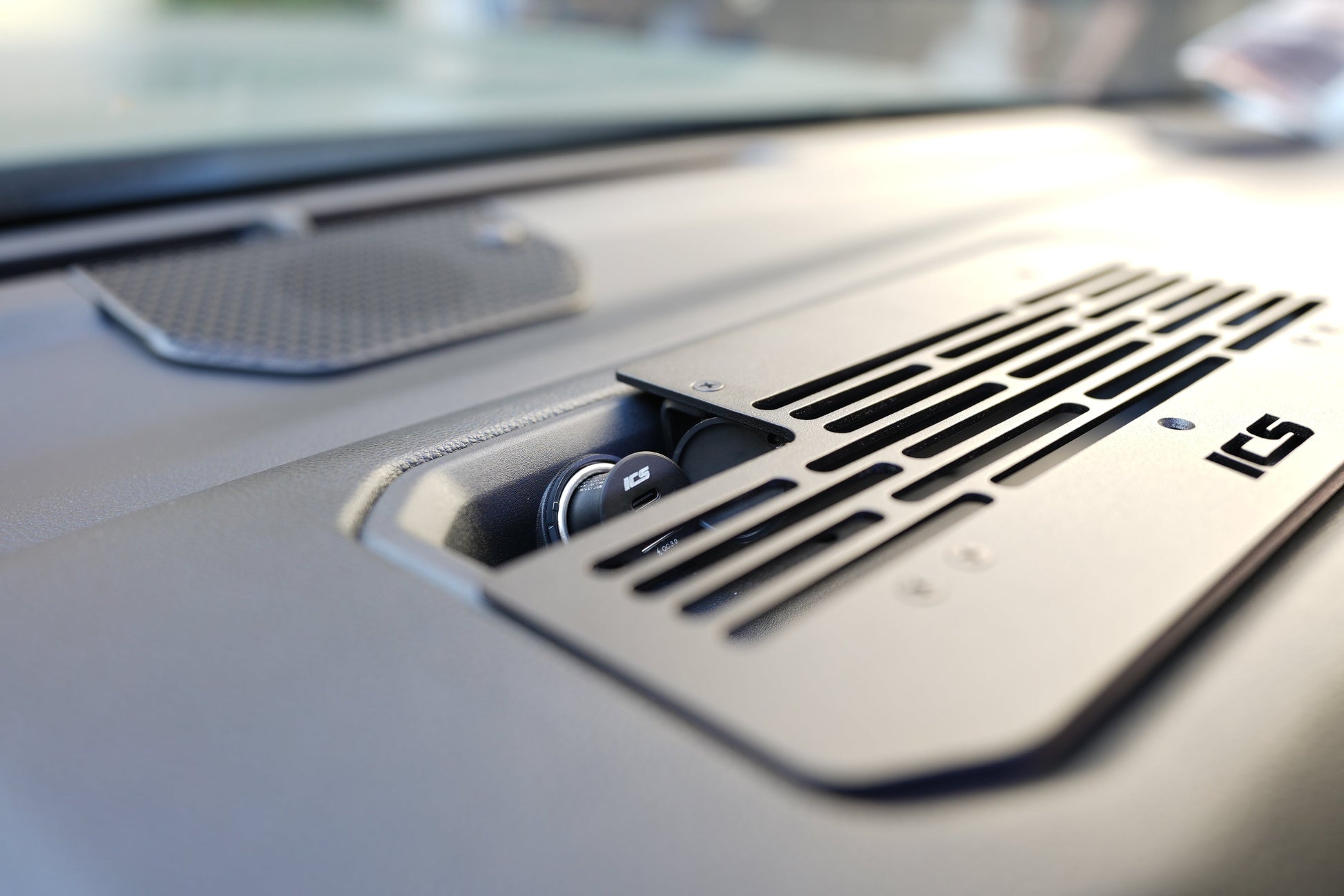 - CNC Laser Cut and Formed Dash Mount Top with Fine Black Textured Powder Coat Finish and screws