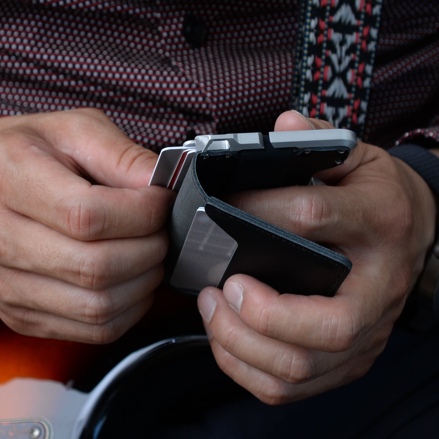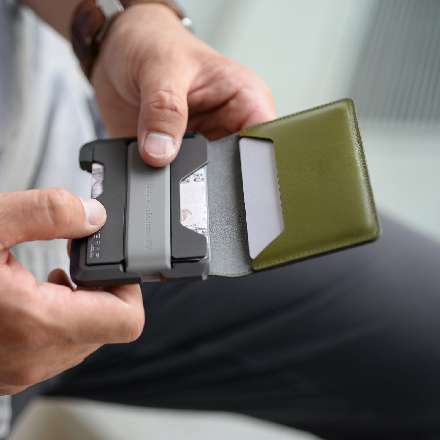 The interchangeable 3 pocket bifold exterior holds up to 4 cards per pocket.
