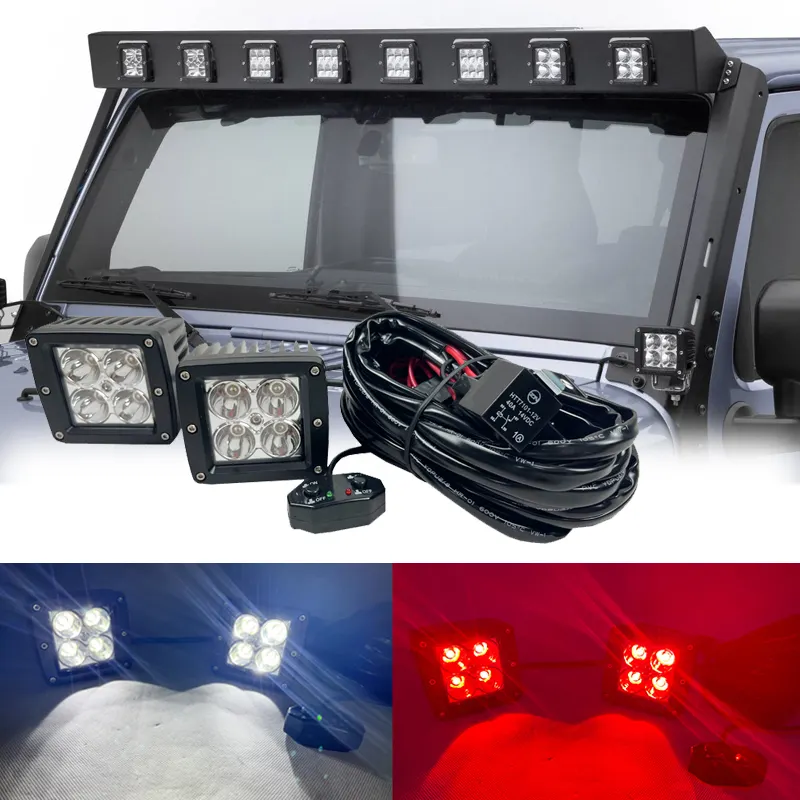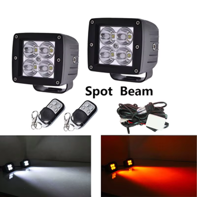 3" Square Spotlight LED Pods with Harness - Wiring harness switch control