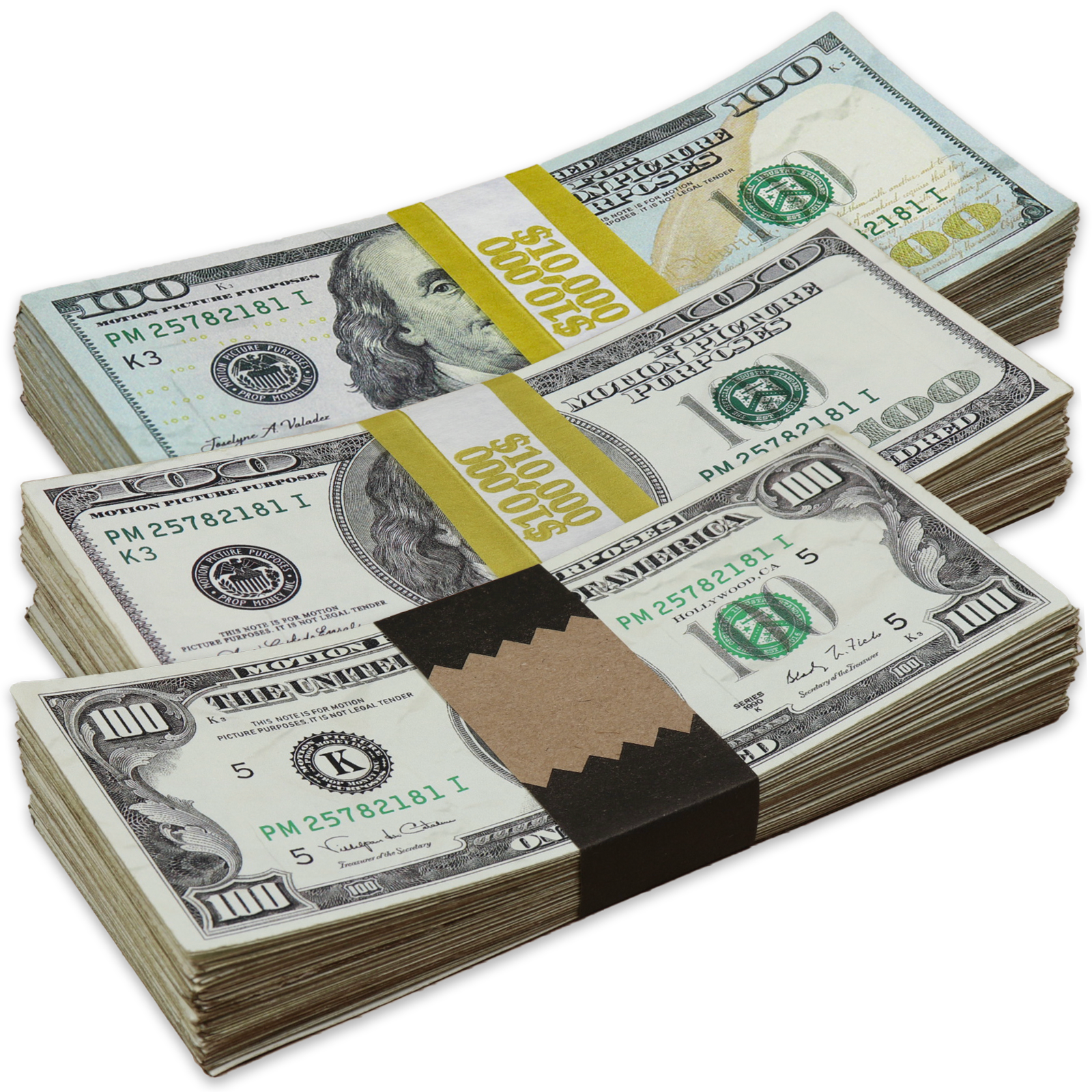 This prop money stacks pack features one hundred $100 New Series bills, one hundred $100 2000 Series bills, and one hundred $100 1990 Series bills for a total of 300 bills that equal $30,000. Carefully aged to look ultra-realistic, the non-glossy highly detailed bills are printed on both sides like real currency and come with a money band. Create the perfect money scene for your music videos, movies, films, ads and more, it's the #1 choice by production professionals worldwide.