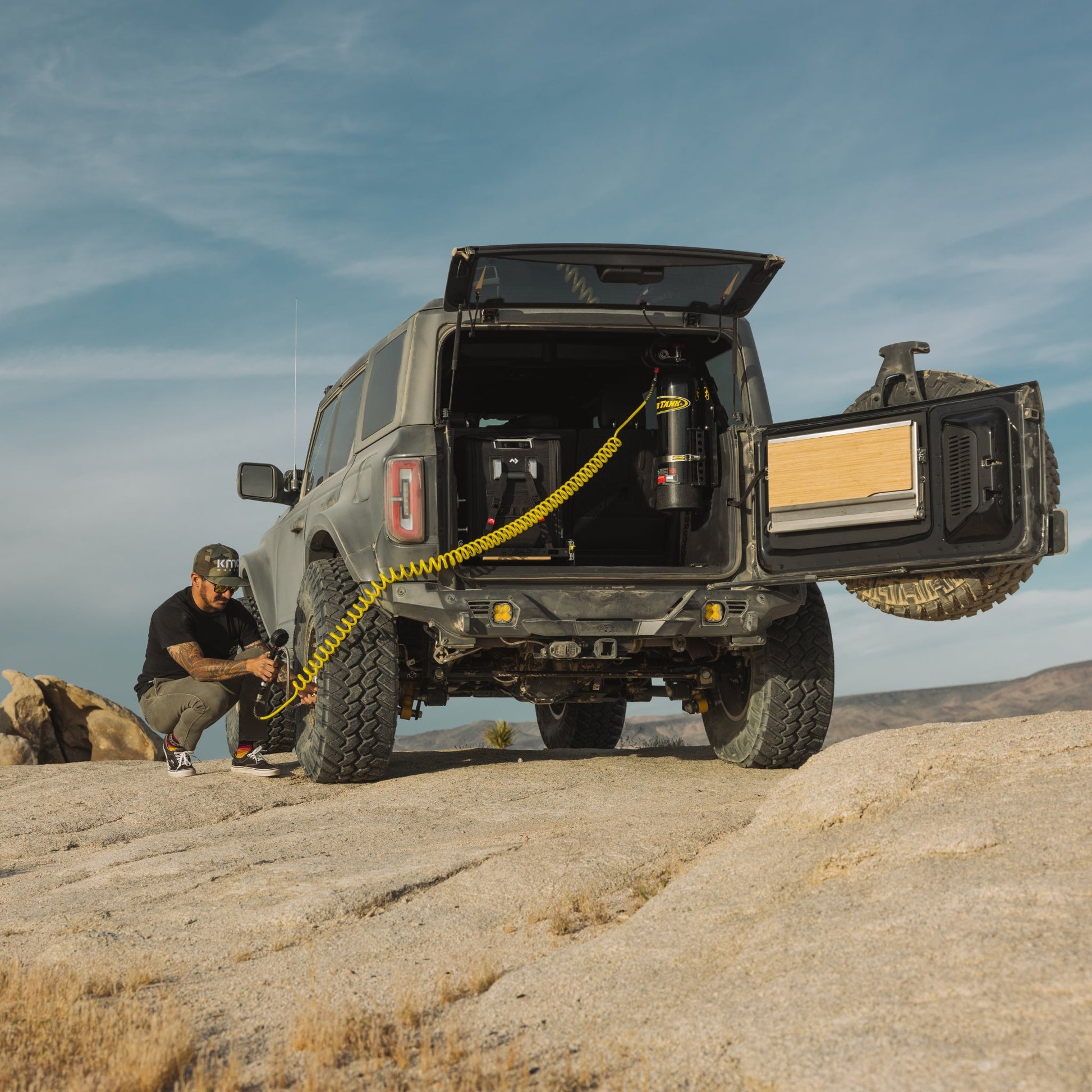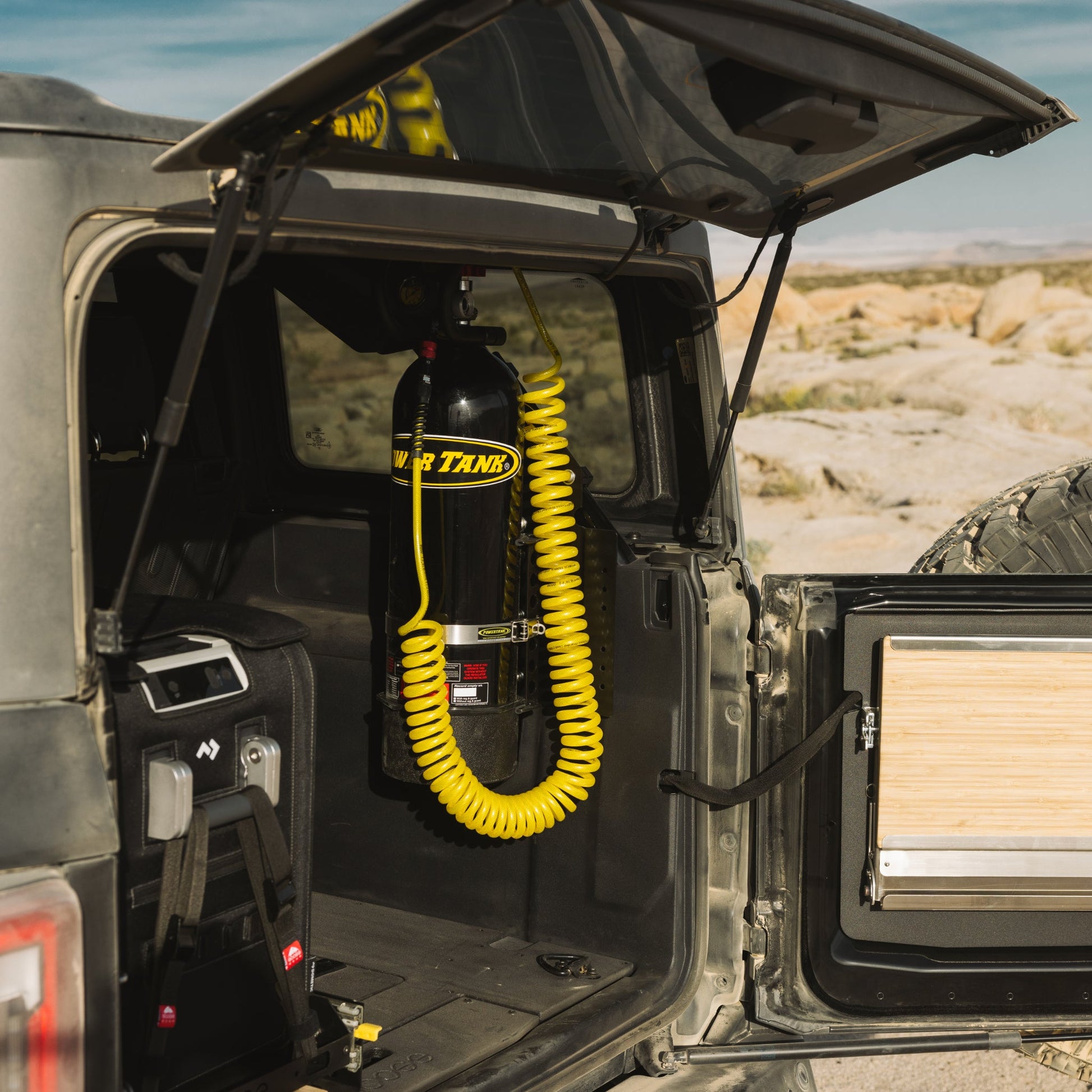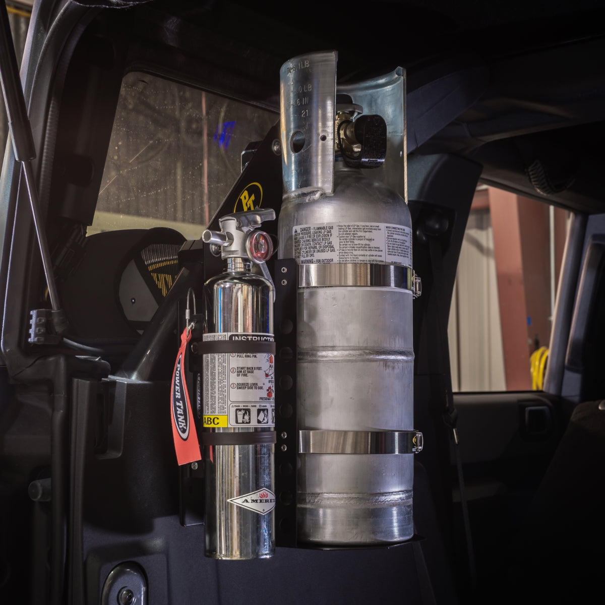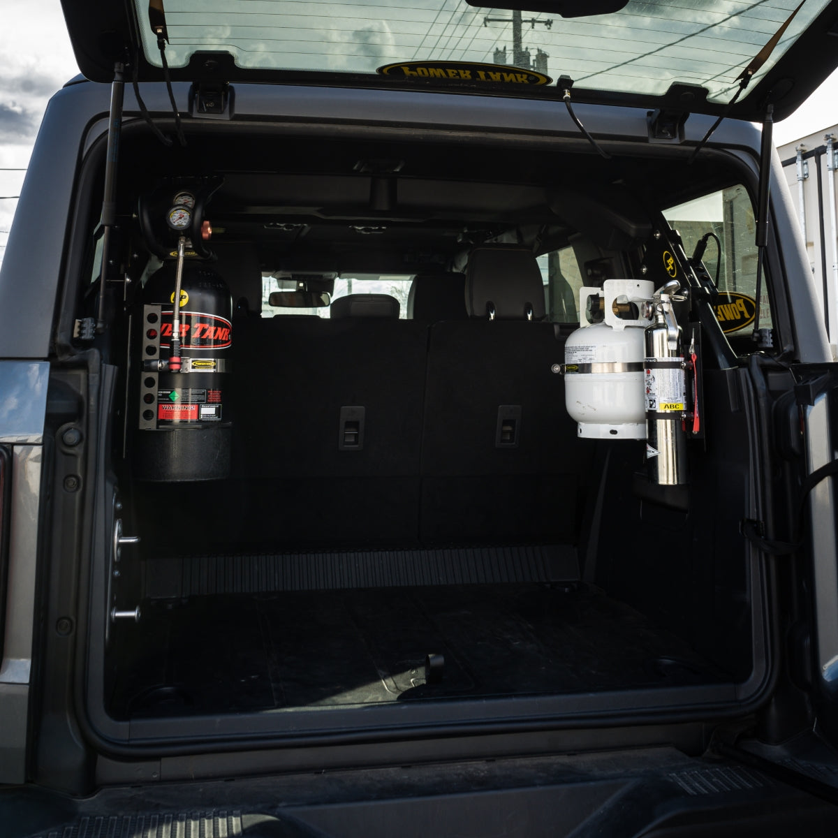 Two essential upgrades that should be in every Bronco that spends life in the dirt are a Power Tank and a fire extinguisher. Fortunately, our 4 Door Bronco Plate provides a mounting solution for both.