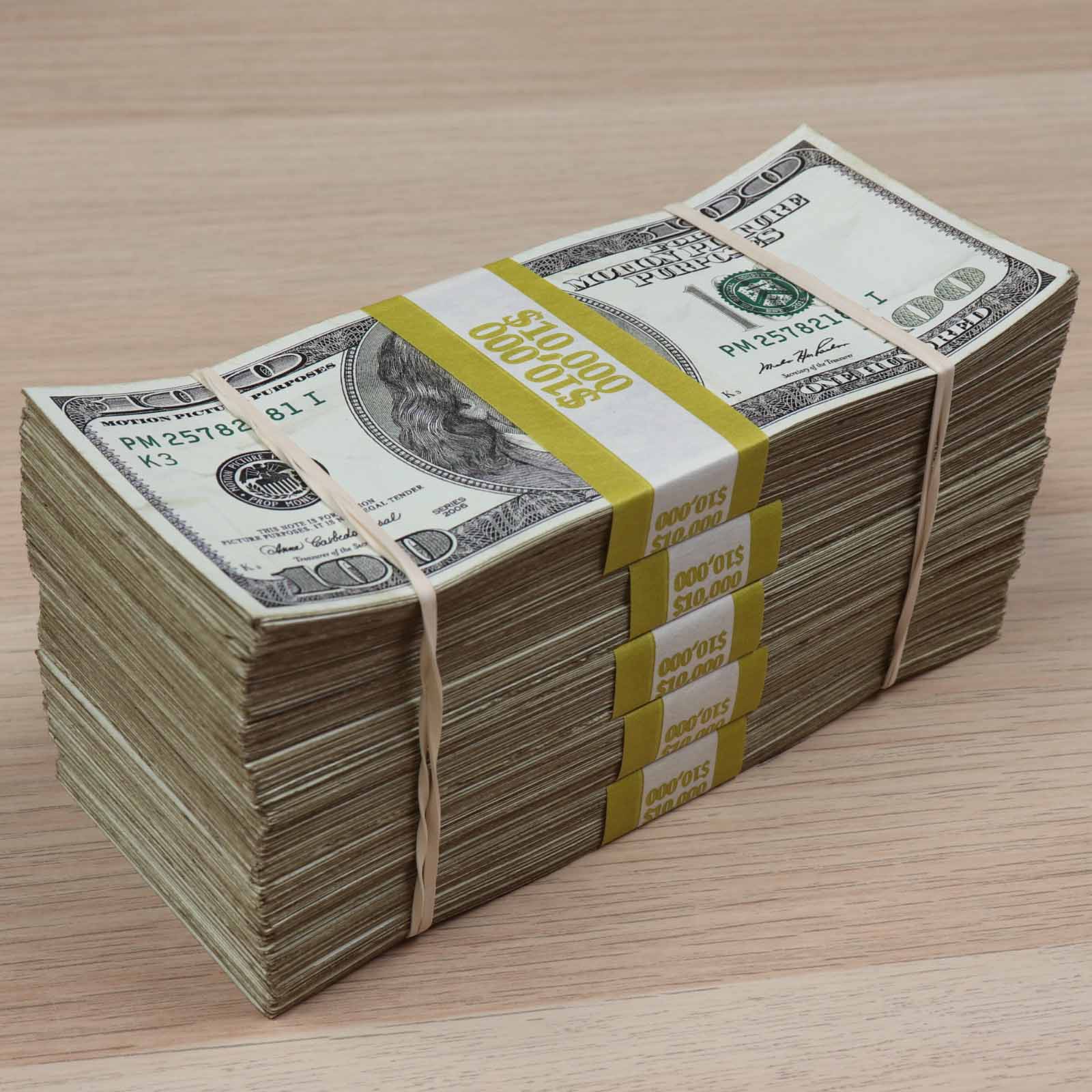 Our $50,000 2000 Series Aged Full Print Stacks Bundle is perfect for film, TV, advertising, music videos, and more. This bundle includes five hundred $100 2000 Series Aged Full Print bills for a total of $50,000. The non-glossy bills feature unmatched quality, realistic detail, and are each double sided. Plus, you'll get money bands and rubber bands. Get the closest look to real money without breaking the bank.