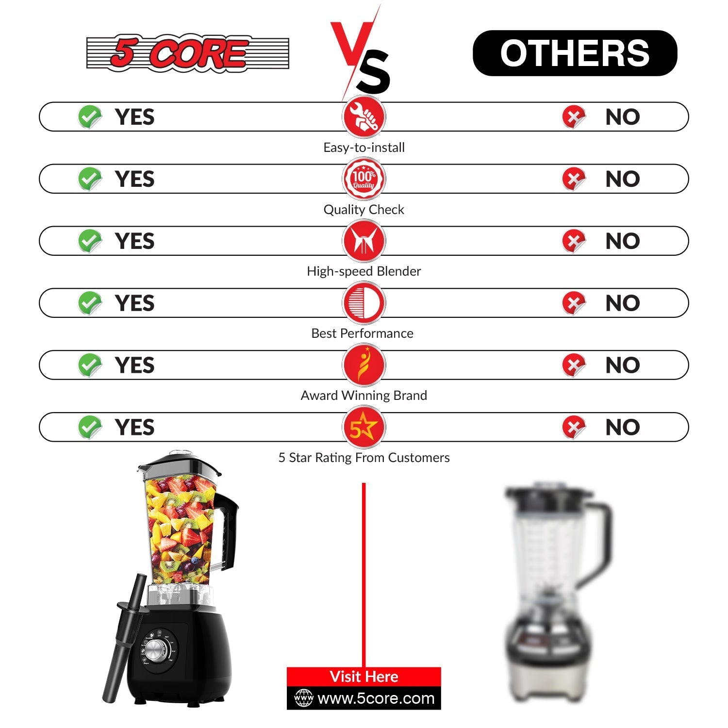 Revolutionize how you make smoothies, protein shakes, and frozen drinks with our top-of-the-line smoothie blender! Boasting a powerful 2000-watt peak blending power and Titanium stainless Heavy Duty steel blades, this blender can easily crush even the toughest ingredients. At 5 Core, Customer satisfaction is our priority—a proven track record of delivering the highest quality product since 1984. |