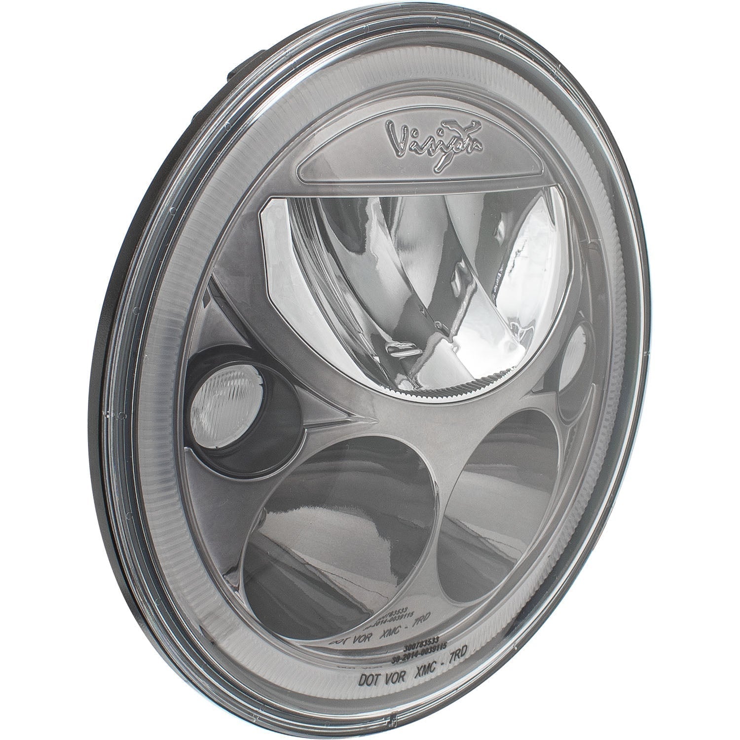 The XMC Headlight was engineered to deliver optimal road coverage. With additional LEDs that fill in the space between the vehicle and the peak of the beam, the XMC Headlight makes riding a safer experience for everyone on the road. With outstanding performance, youll turn heads and shine brighter at the same time. Available in Polished Chrome or Black Chrome finishes, these LED Headlights are the perfect touch to personalize your bike.