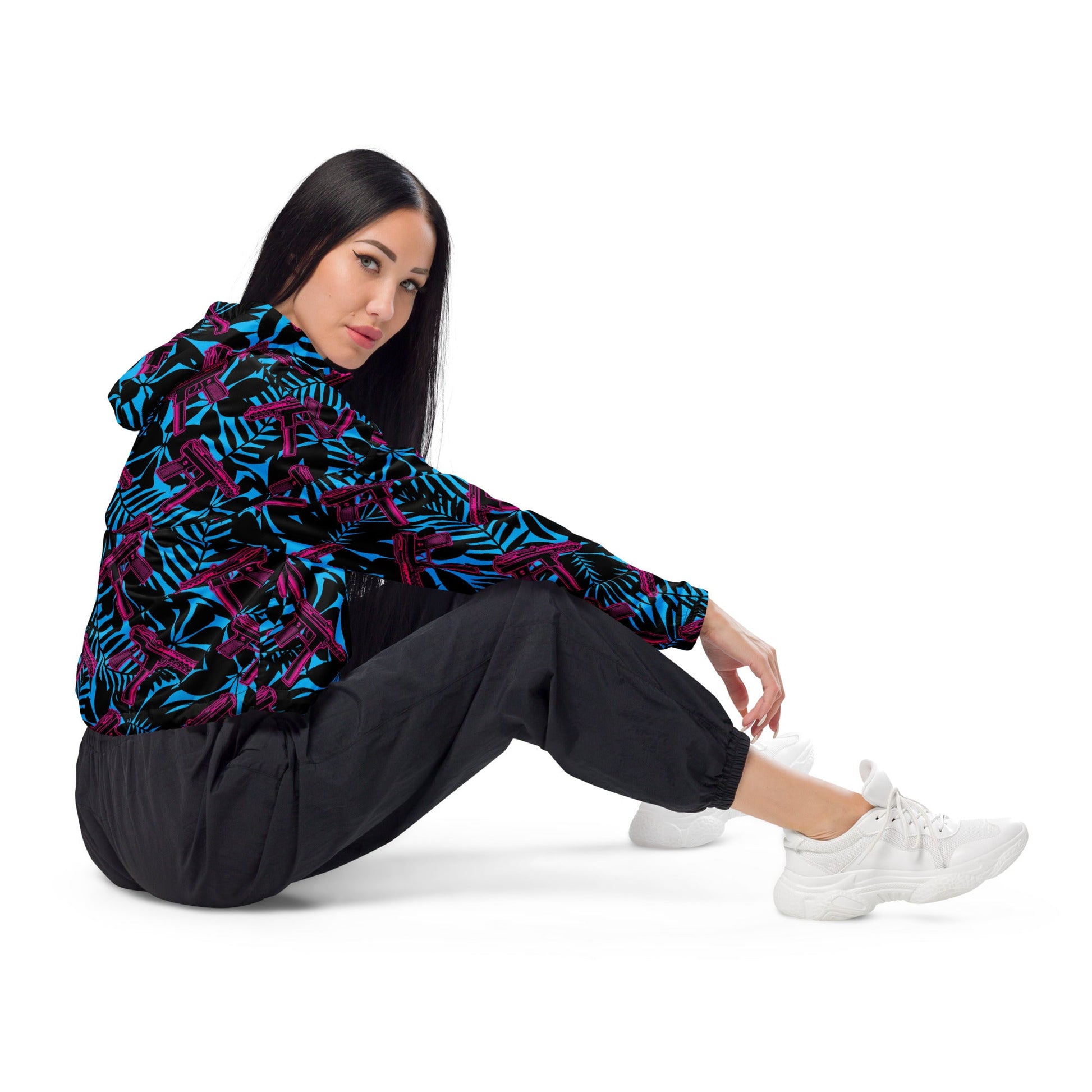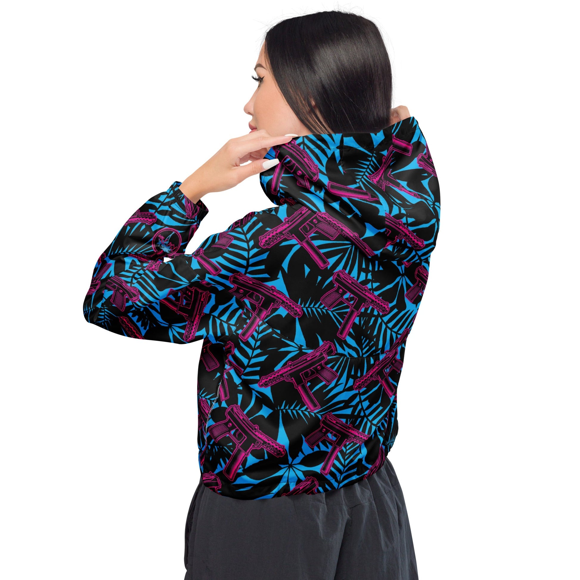 Hike in style without the rain getting in the way—this cropped windbreaker is lightweight, waterproof, and suitable for every kind of adventure. Features include side-slit pockets, breathable mesh lining, and adjustable drawcords on the hood and waist to support all your stylish outdoor looks.