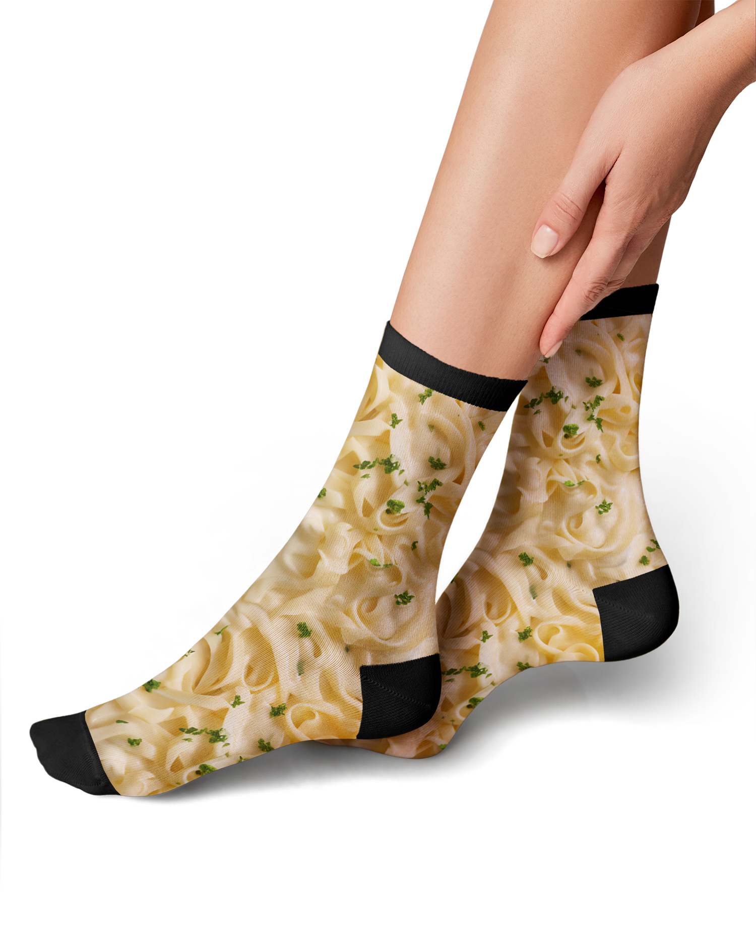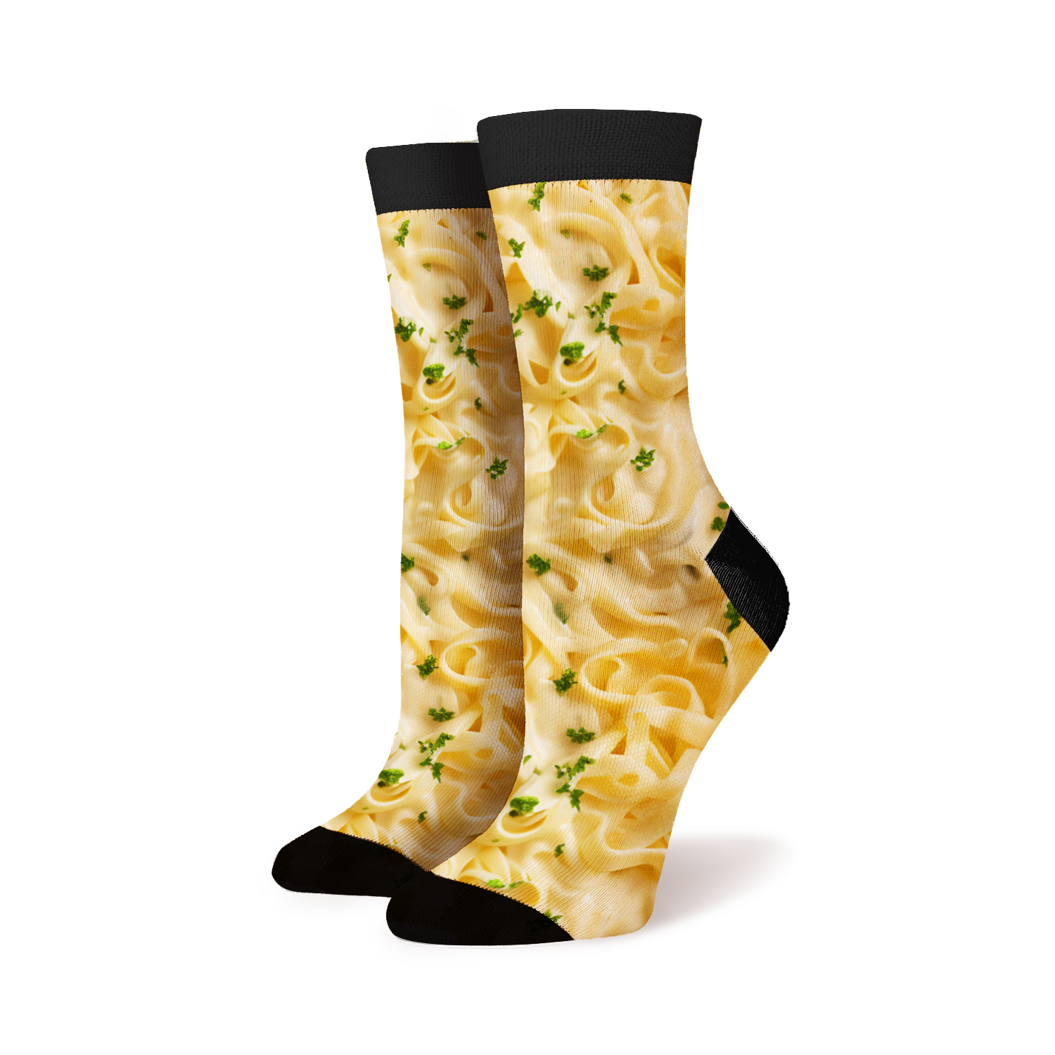 Slide into a bowl of cozy comfort with our Alfredo Pasta 360 socks! They'll have you shouting "Fettuccine-ally awesome!" Decked out with a cheesy Alfredo sauce pattern, twirls of fettuccine, and a sprinkle of parsley, these socks are a pasta lover's dream. Perfect for chefs, carb connoisseurs, or anyone who digs pasta. So next time you're hankering for a hearty meal but can't hit the kitchen, slip on these socks and bask in the warmth of your footsy food hug. You'll feel like you're snuggled up in a delicious bowl of Alfredo pasta!