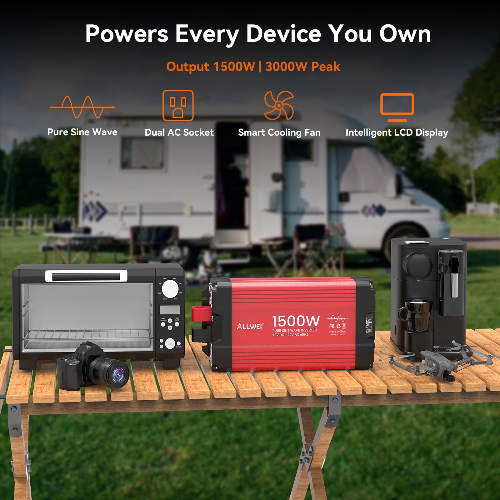 ALLWEI 1500W Pure Sine Wave Inverter 12V to 120V AC