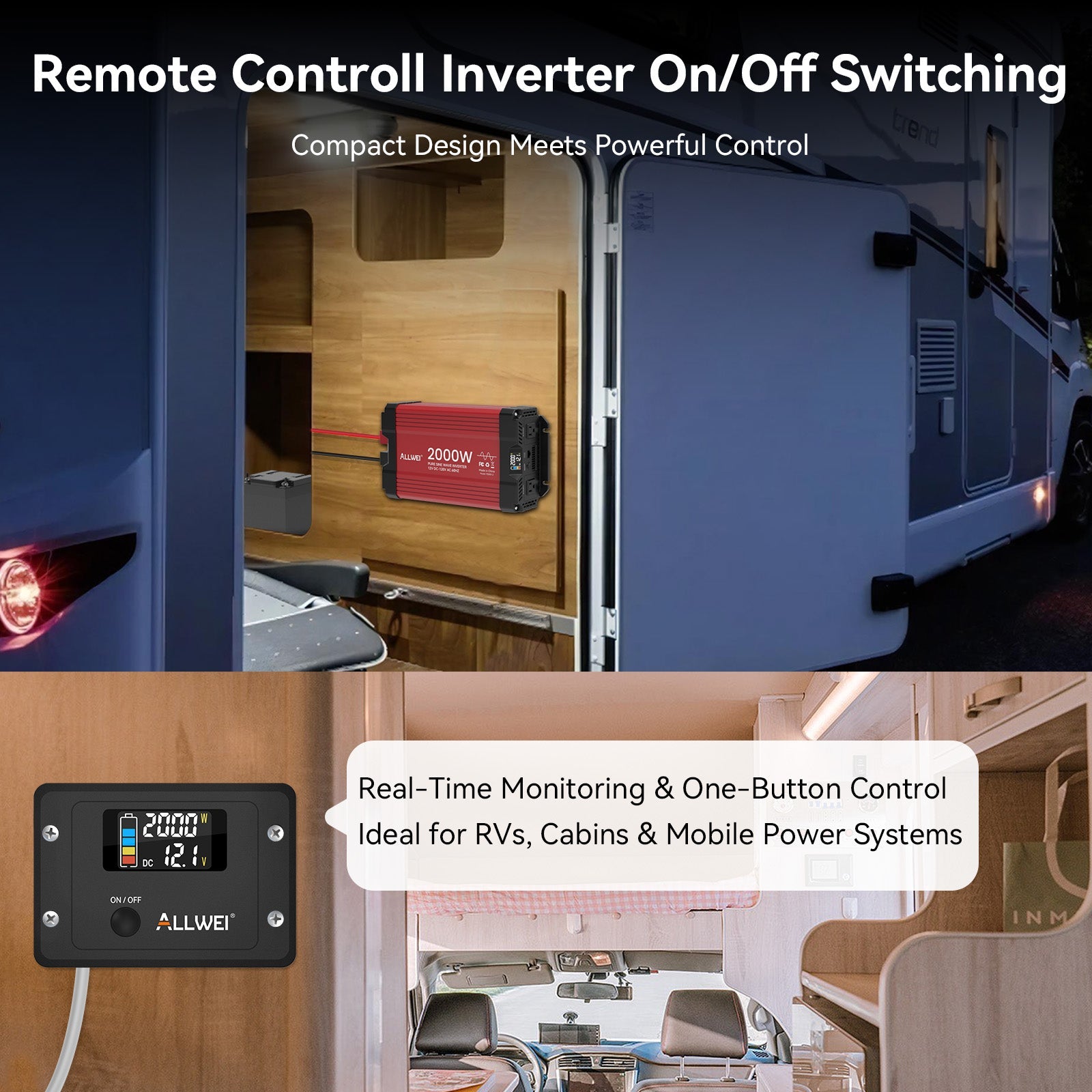 Comes with a 10-foot cable for remote operation. Monitor battery levels and power the unit on/off easily. Ideal for RVs, camping, off-grid use, and emergency power supply.