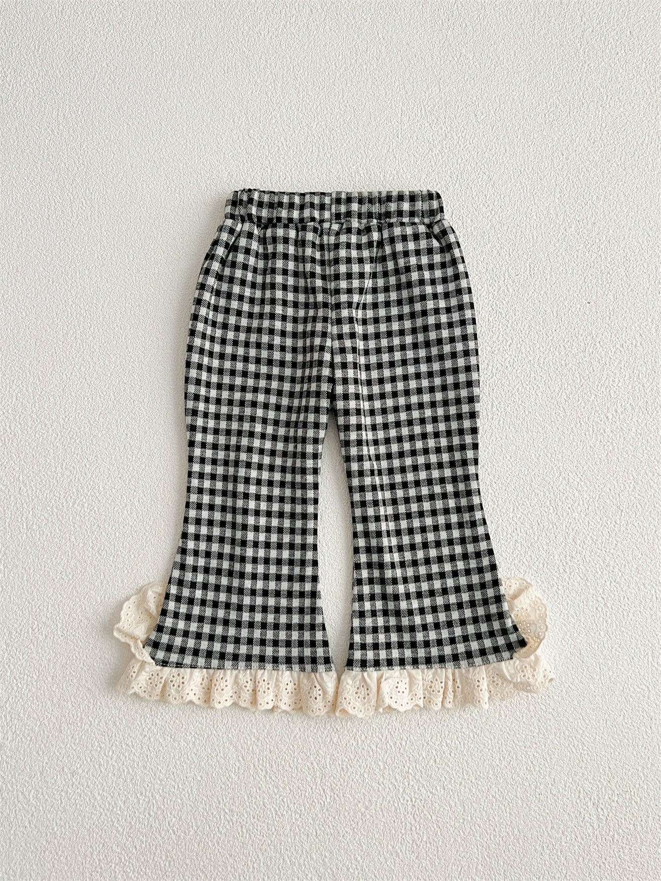 These charming plaid trousers are perfect for your little girl's autumn adventures. Featuring a delicate lace trim, they add a sweet touch to cozy fall outfits. Soft and affordable, these pants keep your child comfortable while exploring the season in style.