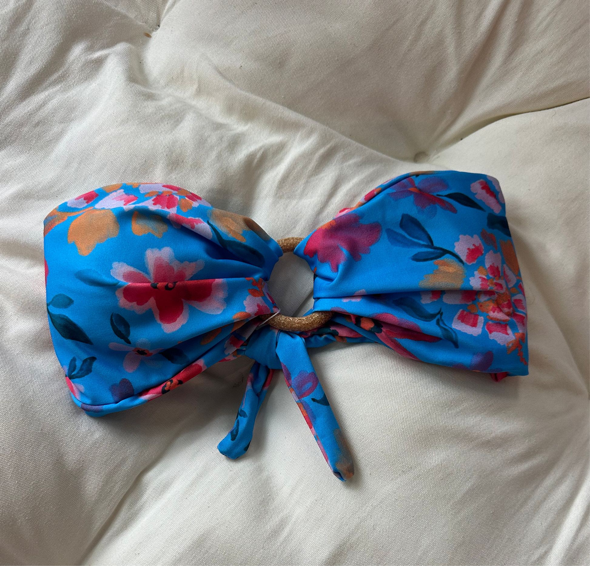This style features a wooden ring detail in the middle making it different than any of our other styles; the back of the top is an adjustable tie closure. There is a removable tie that can be worn around the neck or removed!
