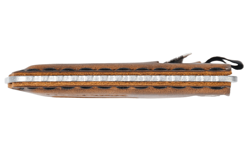 The Trayvax Ascent in Raw Tobacco Brown, is a tough, front pocket wallet that’s with you for the long haul. The Ascent boasts a single, stainless steel plate, notched on both sides for a comfortable grip. Top grain, oil-tanned leather is carefully hand-stitched through the steel plate and secured in place with brass rivets. Carry only what you need on your journey with this slim, dual-slot credit card holder. Over time, the leather will form around the contents of your wallet and develop a patina unique to your lifestyle.