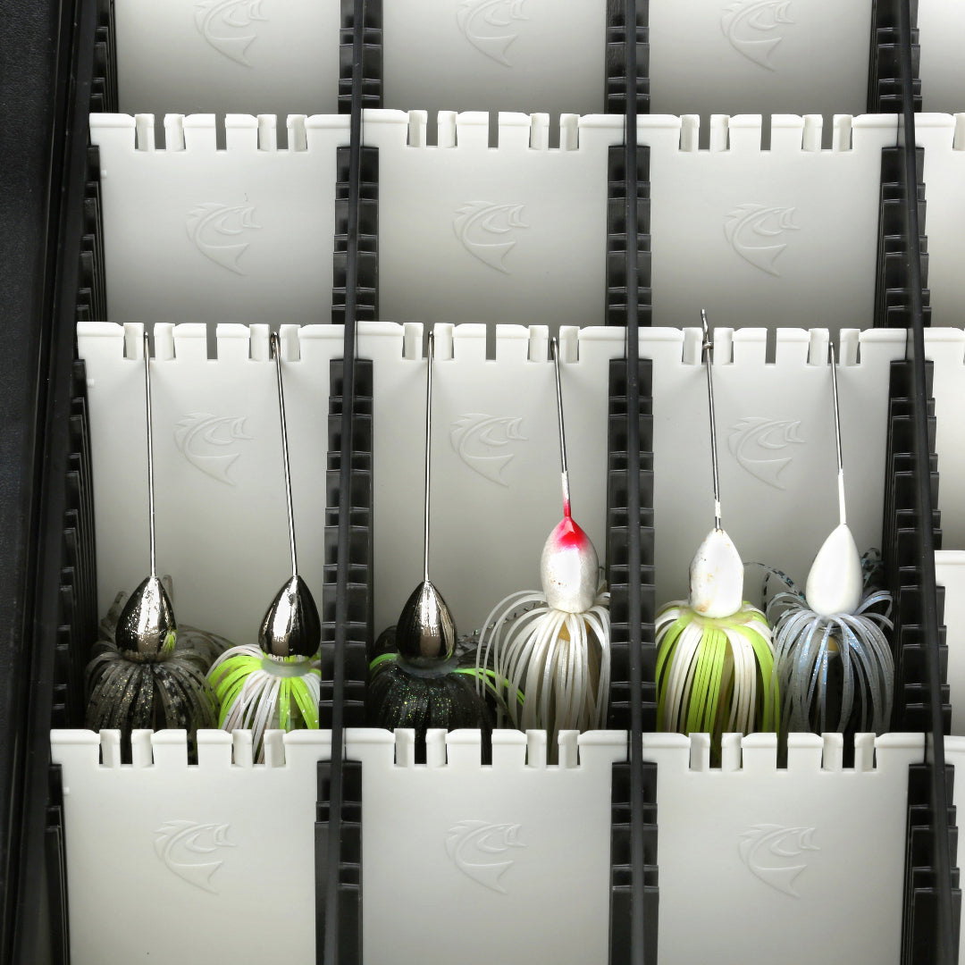 Engineered specifically to solve the issue of entangled baits in your tray. The 3700 Ballistix Hangr Tackle Management Box is finally the solution for maximizing bait capacity and eliminating the struggle of entangled baits. Not limited to treble hooked baits, the Hangr’s patent-pending notched divider allows for spinnerbaits, buzzbaits and even bladed jigs to be held securely in place. No longer will you go to grab a lure and pull out a tangled mess of lures. Finally, there is a do-it all tackle solution that makes sense.