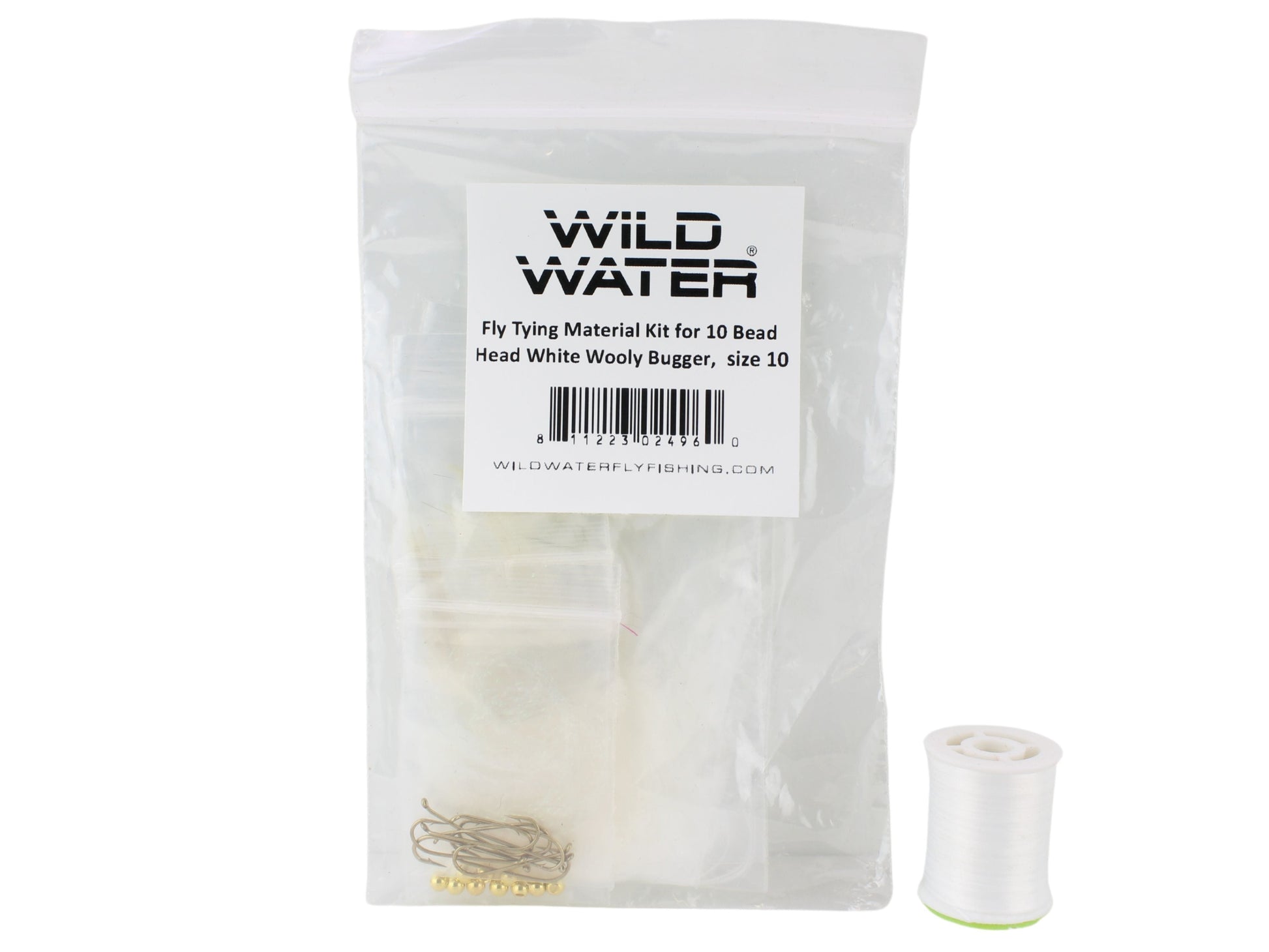 Wild Water's fly tying kits give you all the materials you need to tie a small batch of flies. This kit gives you enough materials and hooks to tie 10 Bead Head White Wooly Bugger, hook size, 10. You will also get a spool of thread and a sample tied fly with this kit.