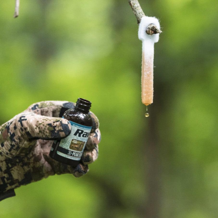 Hang your Big-Wick on a branch over each scrape and pour some RAW Frozen Scents directly onto the ground.