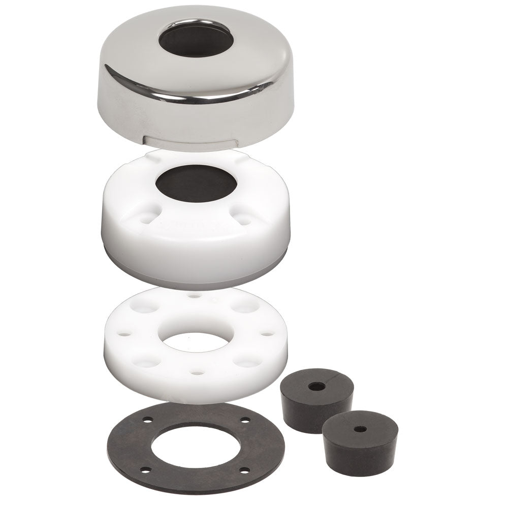 - A polished stainless steel dress cap conceals mounting hardware, matches other deck hardware and offers protection from UV