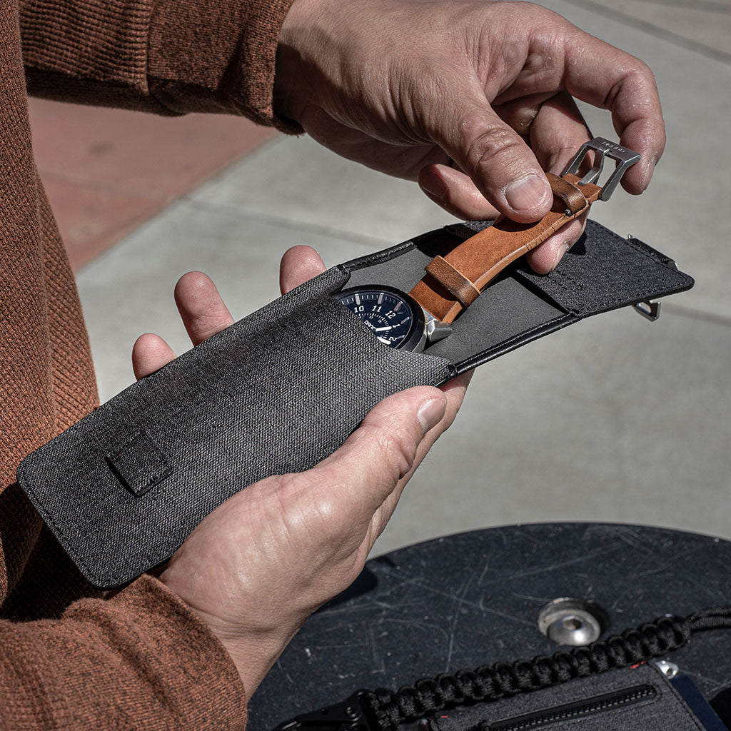 Whether you are traveling and need to organize your EDC, transporting a nice watch, holstering a choice blade, this sleek and lightweight product is designed just for you. Slim down your pockets, organize & protect your gear and allow yourself to transport more. Carry your favorite watches, pens, knives, jewelry, tools, tech and other small EDC gear.