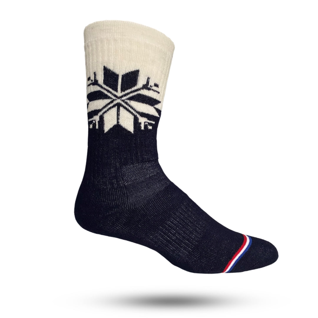 We used the "Wild Bill" core and threw in some fashion. Our merino wool is still the strongest and softest on the market! Our Adventure socks wick moisture away from your feet to keep you comfortable no matter how many miles you put on them! A reinforced smooth toe seam helps make your descent from the mountains even more enjoyable. “Carla” is rounded off with arch compression and a mesh panel for the perfect temperature and fit.