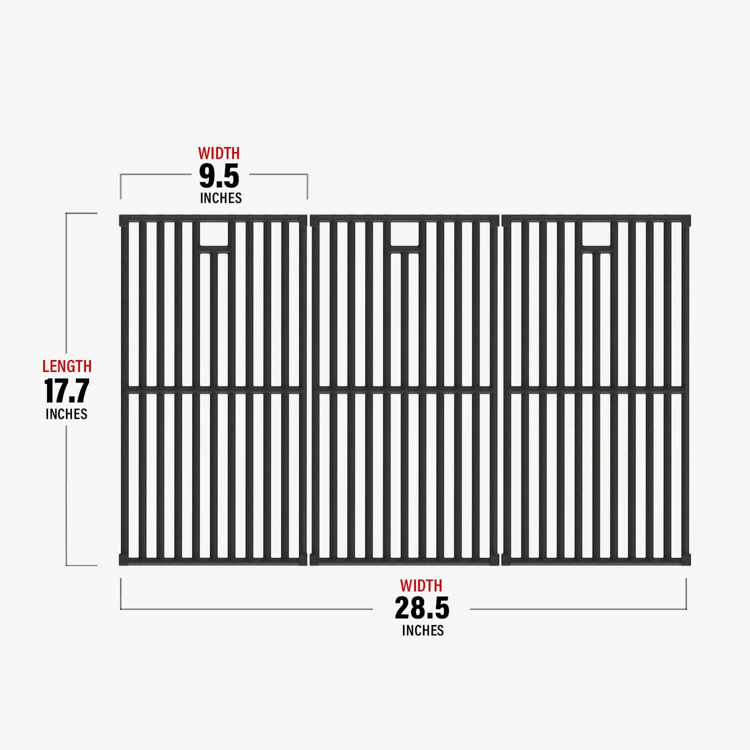 A100 Size: Width of 12 inches (approximately 30.48 cm) and length of 17.7 inches (approximately 44.958 cm), perfectly fitting your grill space.