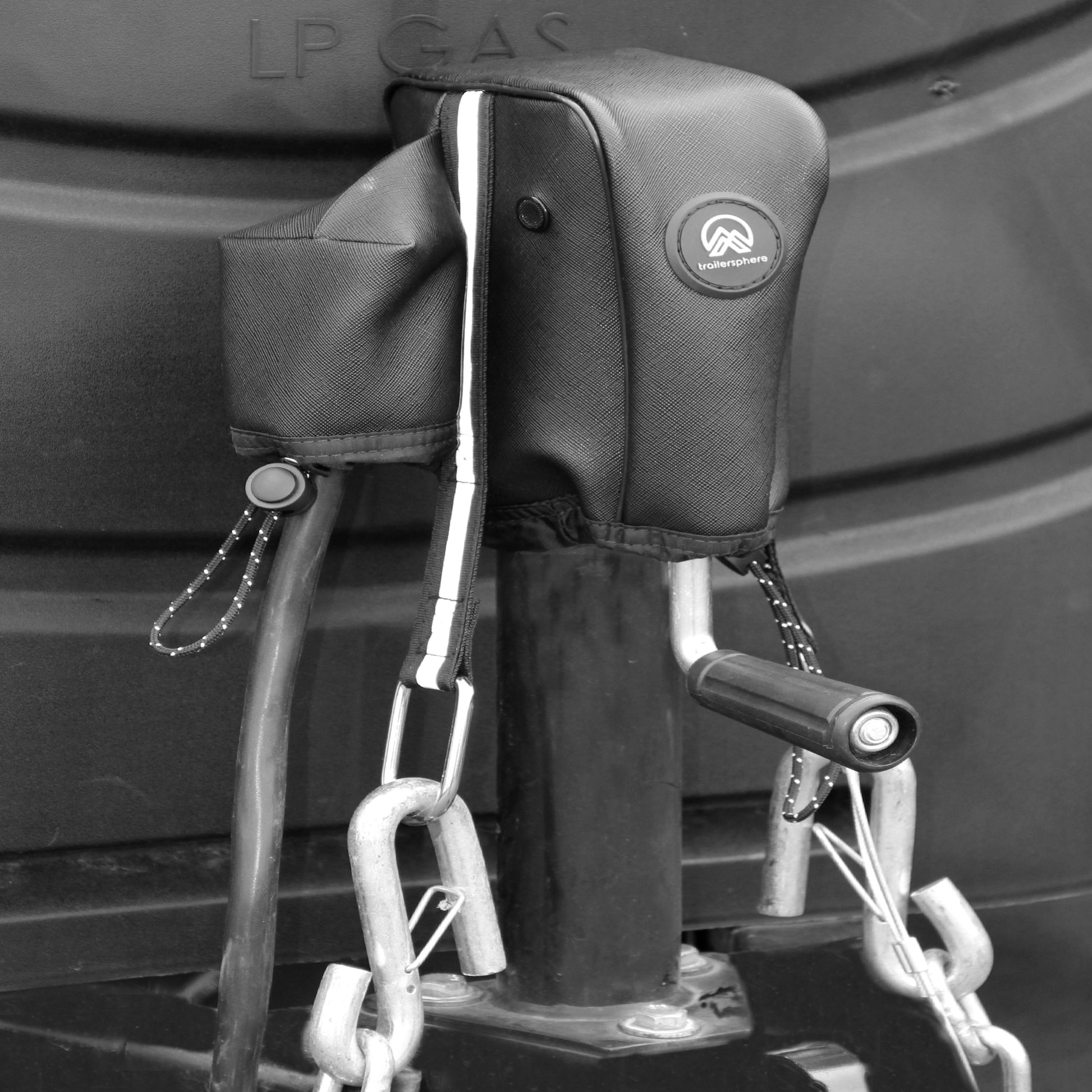 Clever Cover fits like a glove and protects your electric tongue jack from dirt, harsh elements, and the weather. Not only does the Clever Cover hug your jack, but also your electric plug and your safety chains have a protective home too.