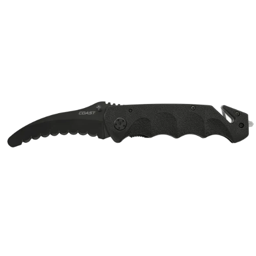 Conceived specifically for rescue personnel, the DX335 has a curved blade designed to easily cut clothing or seatbelts while minimizing the possibility of injury to the rescue victim. A glass breaker and integrated seatbelt cutter are included for maximum versatility. The knife features a patented Double-Lock safety switch mechanism which works in conjunction with the primary Liner-Lock to prevent disengagement when the knife is open, even if the Liner Lock is inadvertently dis-engaged. A grip-textured aluminum handle adds incredible strength and durability. Thumb studs on both sides of the blade make opening the blade easy; right or left handed. Backed by Coast's lifetime guarantee against defects in materials and workmanship.