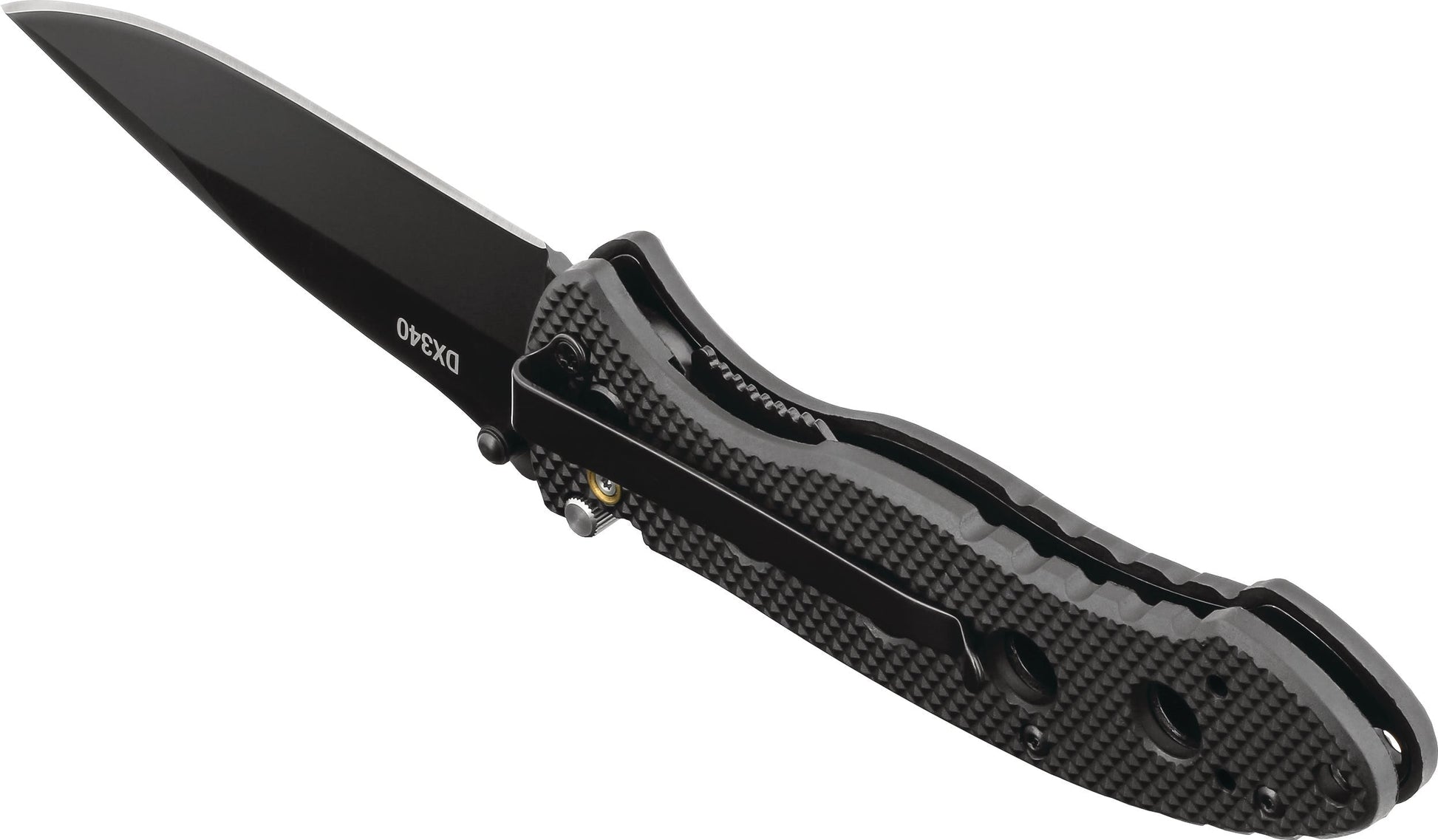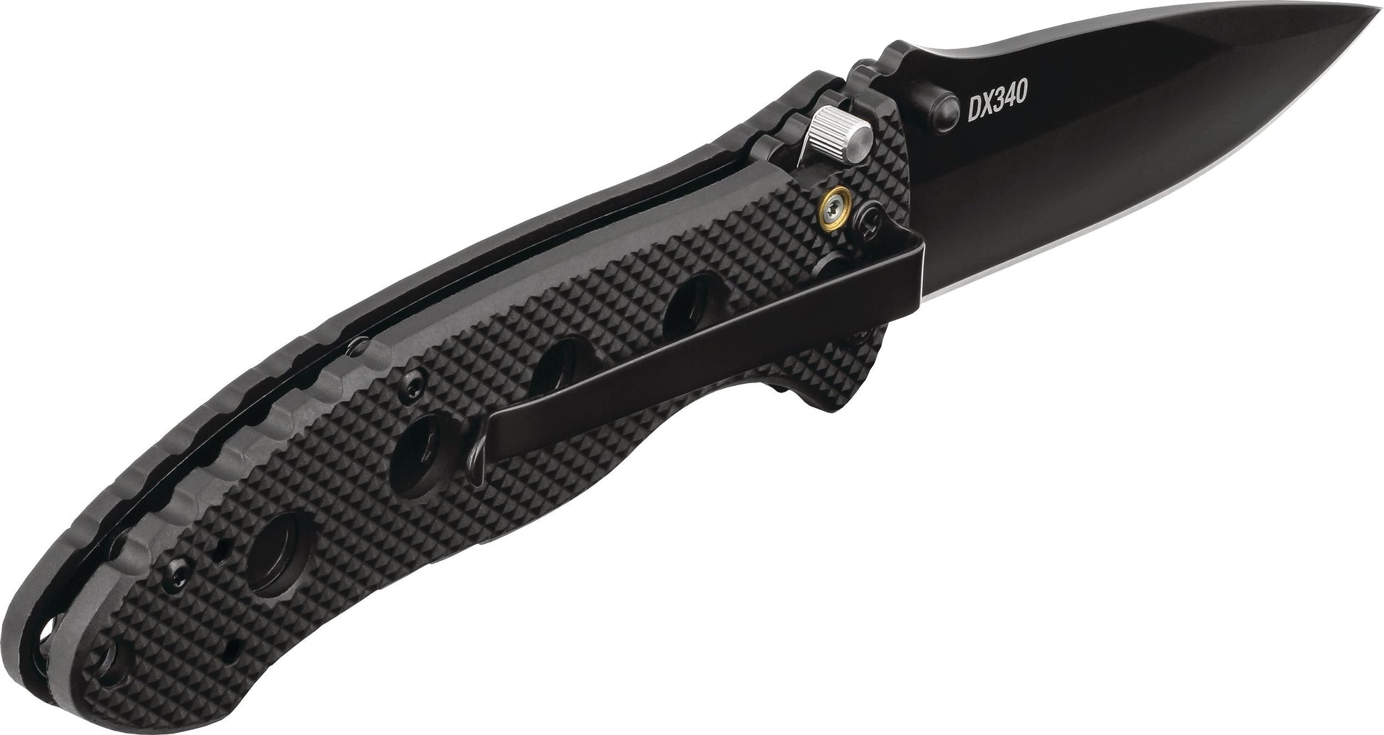 The DX340 Knife comes with a checkered fiberglass-filled nylon handle and thumb notches on top of the blade for a secure grip. Utilizing our Double Lock technology, anyone can work with confidence knowing that the added safety prevents the knife from accidentally closing. It easily opens with one hand using thumb studs on the blade, and you can adjust the 3-position pocket clip to adapt to your carrying style.